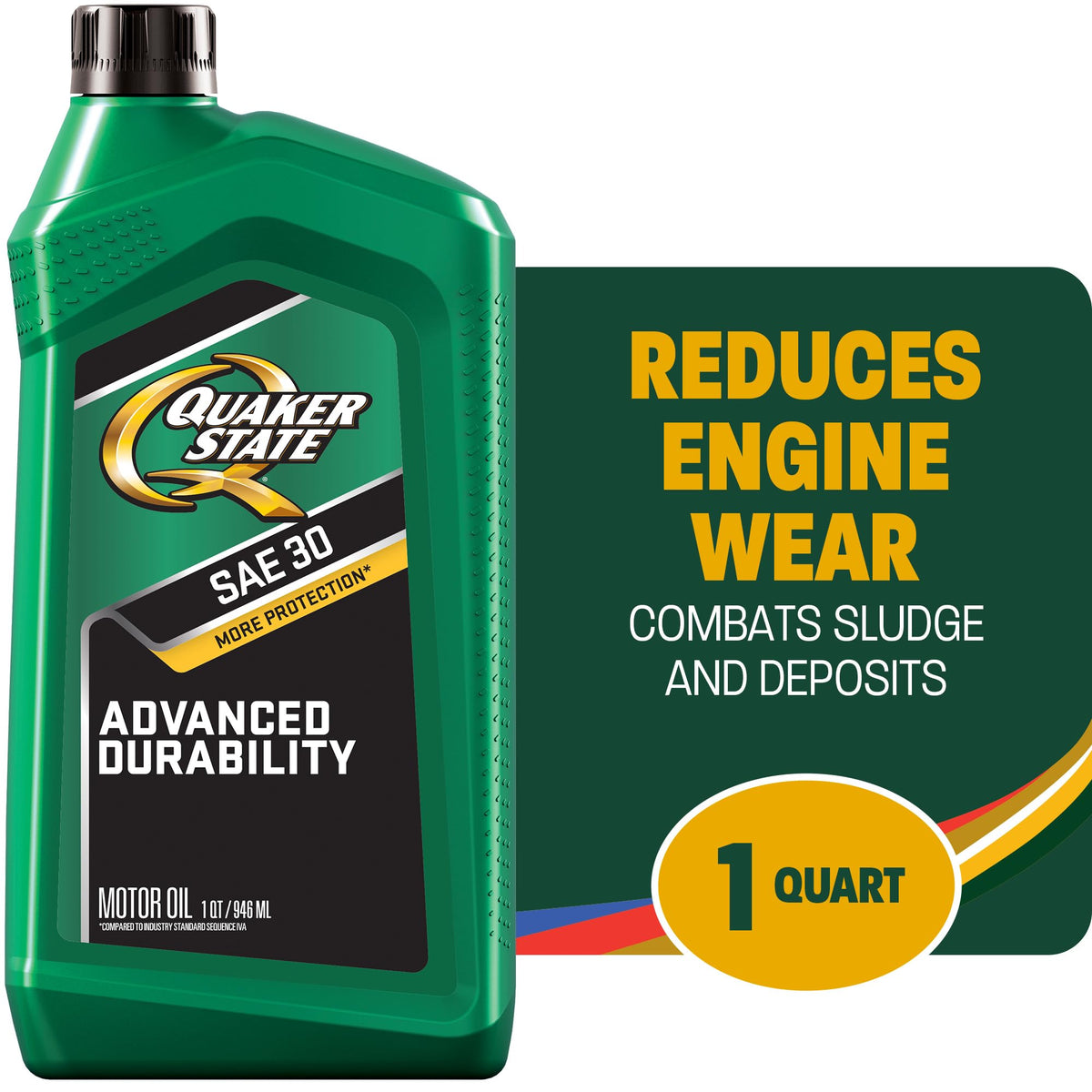 Quaker State SAE 30 motor oil helps engines survive daily commutes from high-speed highway operation to repetitive, stop-and-go driving. It reduces engine wear to provide durable wear protection and combats engine sludge and deposits. Quaker State Motor Oil also provides corrosion protection from harmful acids generated by engine contaminants. Recommended for all vehicles that require use of SAE 30 motor oil, it maintains the required viscosity from start to finish. Quaker State motor oil comes with a warranty of up to 10 years or 300,000 miles, whichever is first*. (*Quaker State Lubrication Limited Warranty: Free warranty of up to 10 years or 300,000 miles, whichever is first, if you exclusively use Quaker State Full Synthetic motor oil, Quaker State Synthetic motor oil, Quaker State High Mileage motor oil, or Quaker State motor oil. Enrollment required. Keep your receipts. Other conditions apply. See QuakerState.com/warranty for details.)