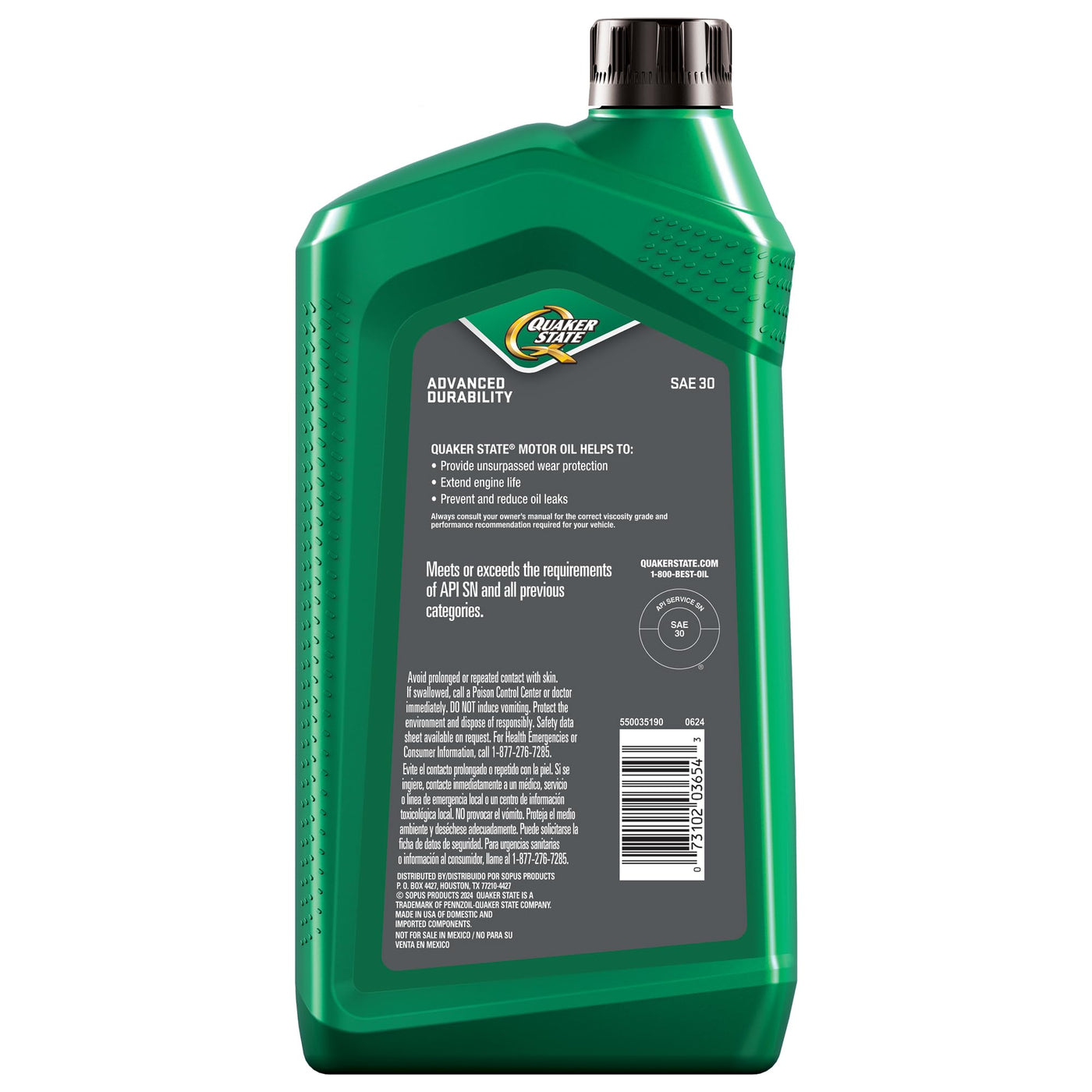 Q: What industry standards does Quaker State SAE 30 motor oil meet?A: Quaker State SAE 30 motor oil meets or exceeds industry requirements including API SN and all previous categories. This ensures it provides reliable performance and protection for your engine.