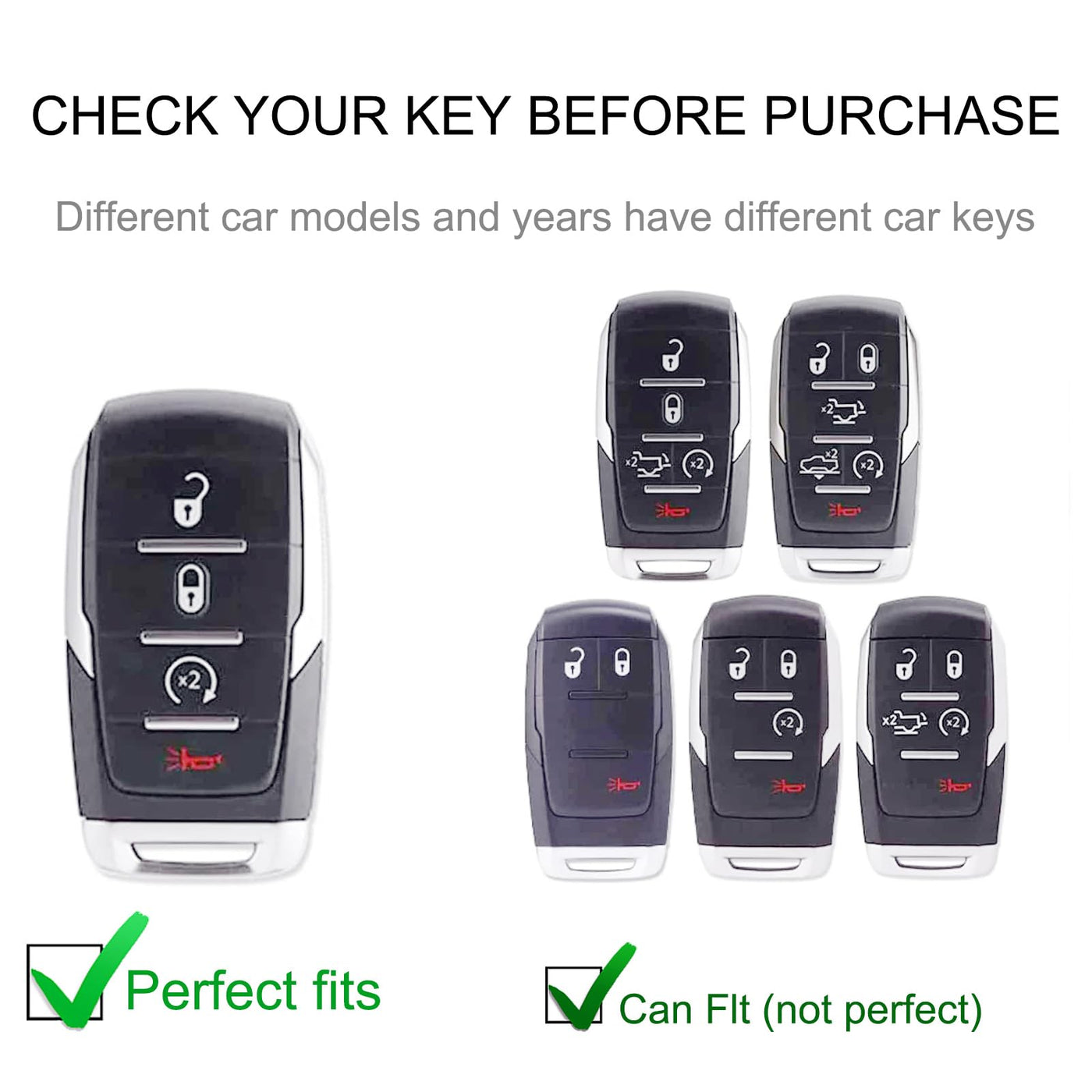 Cacarlike For Dodge Key Fob Cover With Leather Lanyard, Car Key Fob Case Compatible With 2019-2023 Dodge Ram 1500 2500 3500 4500