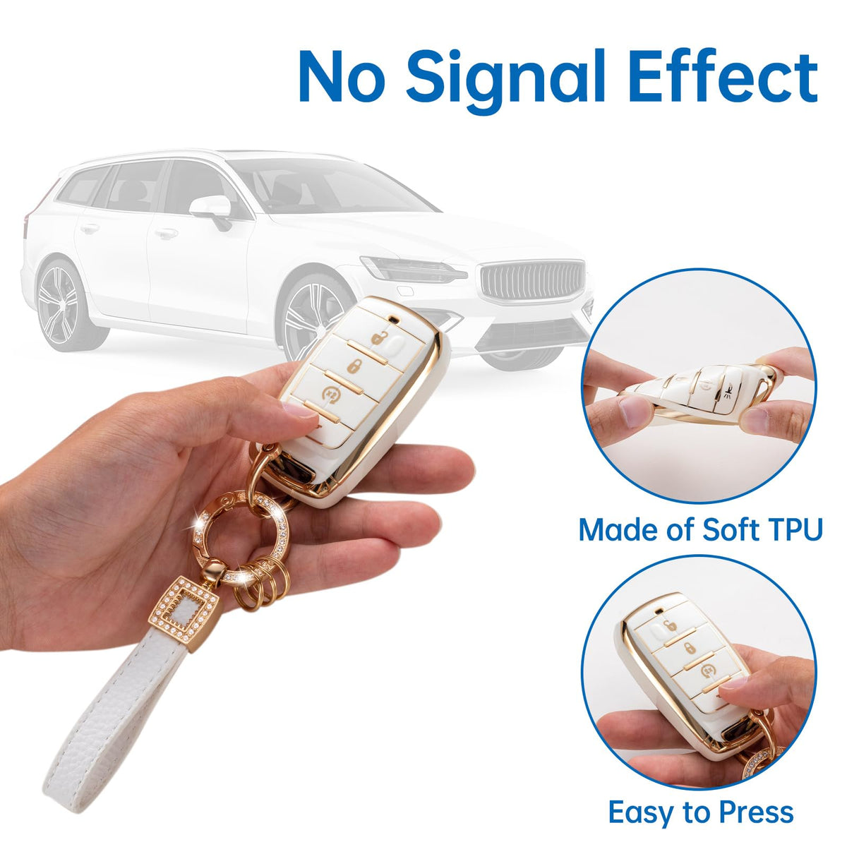 Key Fob Case for Dodge 2019-2023 Dodge RAM 1500 2500 3500 4500 5500 4 Button Smart Remote Key with Pearl Keychain LanyardColor: White & GoldMaterial: Premium TPUPackage Include:1 * Soft TPU Key Protector for Dodge(Note: NOT included the car key)1 * Metal Circle Ring Clip with 3 Rings1 * Metal D-buckle1*Shiny Pearl Keychain Lanyard1 * Screwdriver (Please keep them, you will need them to take out the keys)