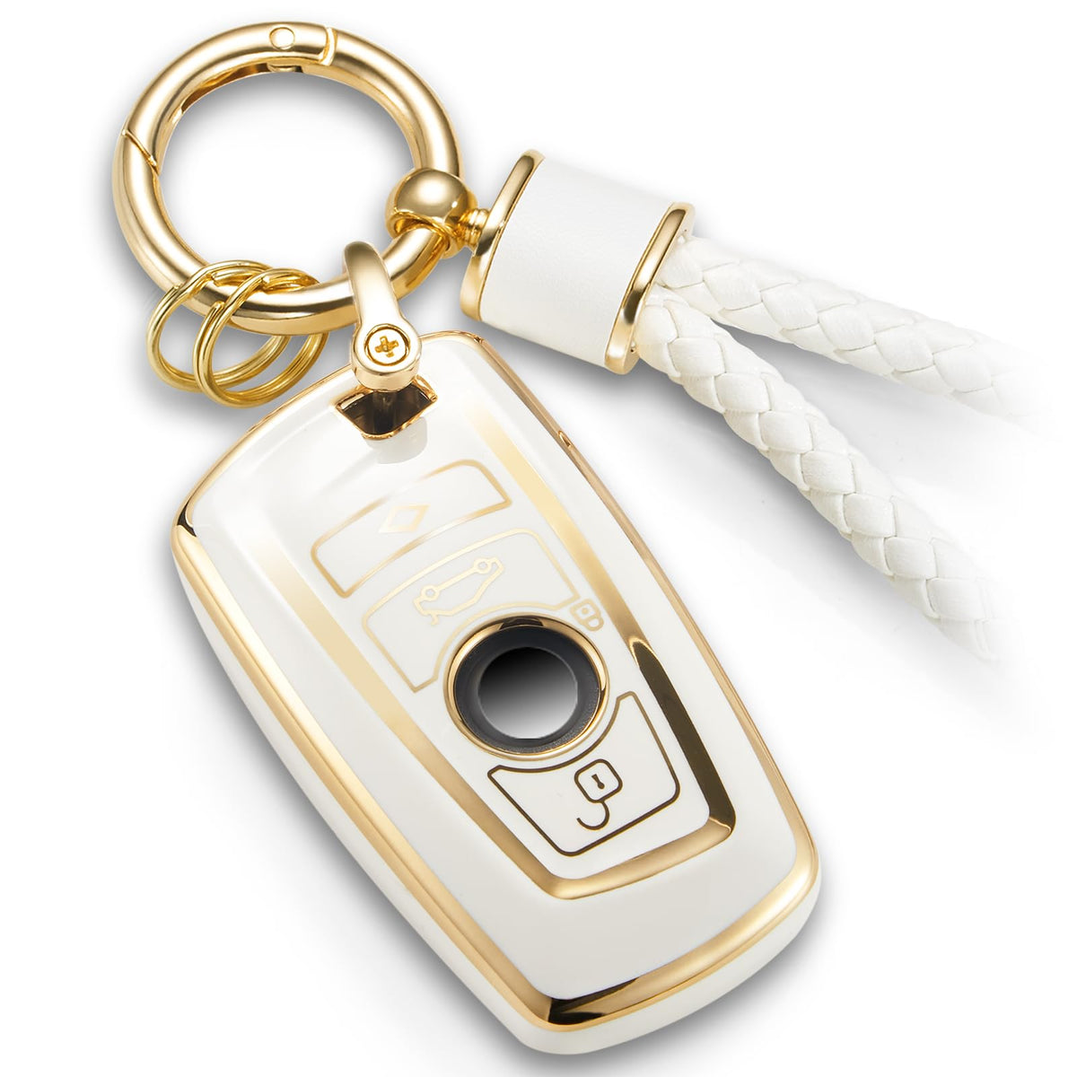 Ctrinews For Bmw Key Fob Cover With Metal Braided Rope Keychain For Bmw Accessories, Upgraded Soft Key Case For 1 3 4 5 7 Series