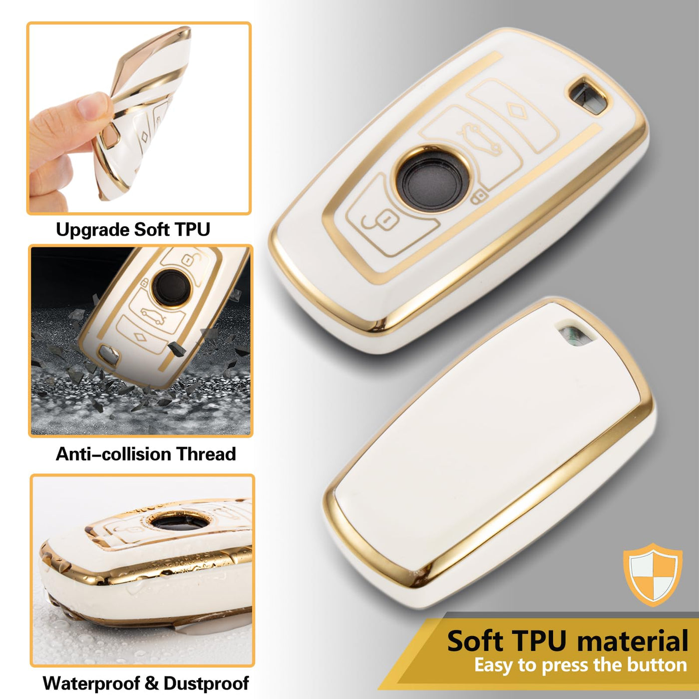 CTRINEWS for BMW key holder is made of high quality thermoplastic polyurethane (soft TPU), just fits keyless entry smart key type for 2 5 6 7 Series X1 X2 X3 X5 X6 M5 M6 GT3 GT5.It can effectively prevent you key from scratches, broken,cracks. Different colors available can make your key very eye-catching and personalized.