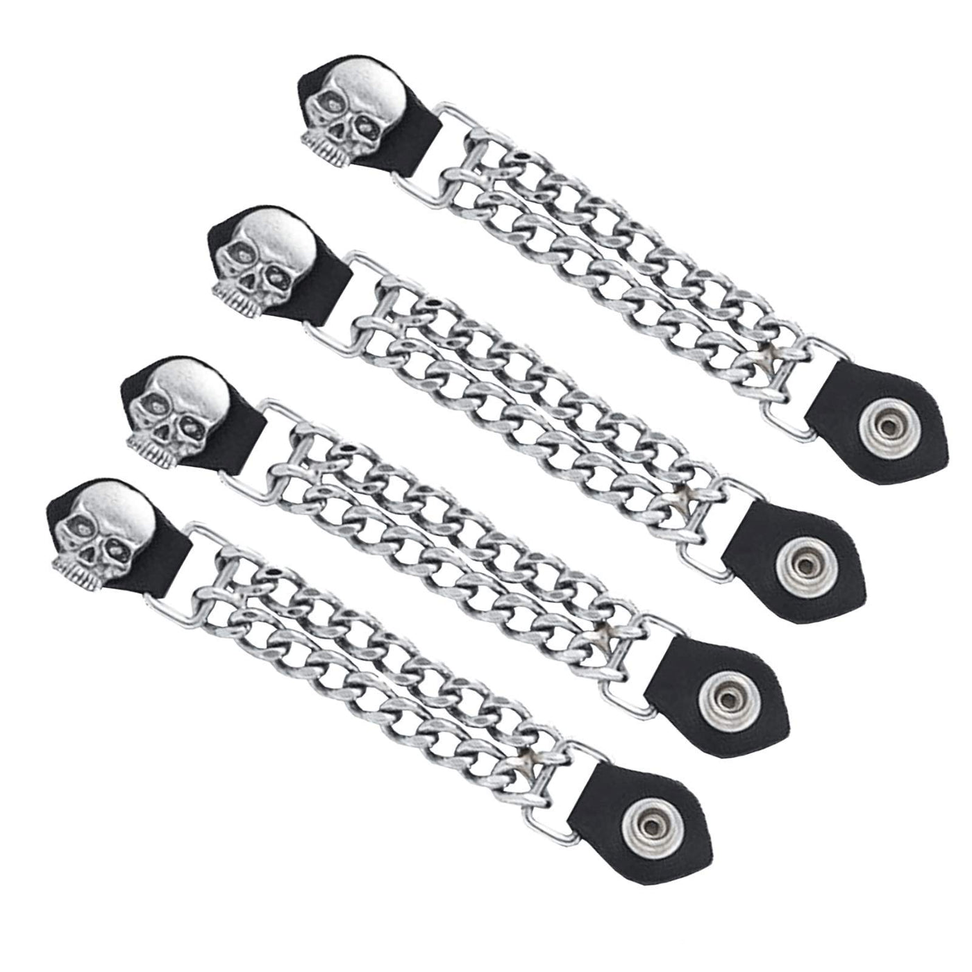 Dream Apparel 4 Pc 6 1/2 Inch Motorcycle Vest Extenders Biker Skull 4 Inch Chain Chrome (Black)