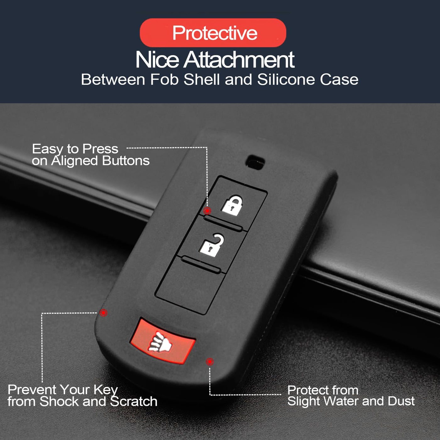 Q: Is this key fob cover compatible with my Mitsubishi vehicle?A: Yes, this key fob cover is compatible with various Mitsubishi models, including the Eclipse Cross, Lancer, Mirage, Montero, Outlander, Montero Sport, and Outlander Sport, specifically designed for smart 3 button keys. Please check the compatibility with your key fob against the images provided before placing your order.