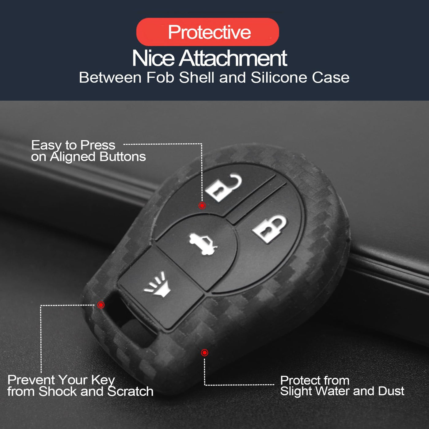 Q: What materials are used in this key fob cover?A: The key fob cover is made from high-quality silicone, which offers a lightweight and durable protective shell. Its carbon fiber pattern not only enhances the appearance but also provides a stylish look while protecting your key fob from damage.
