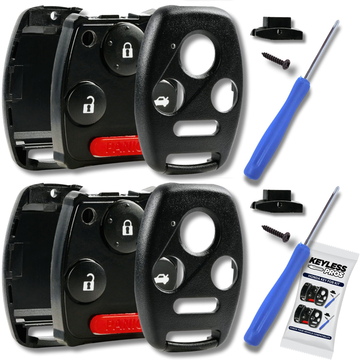 KeylessPros 4-Btn Shell Kit & Gut Case, Keyless Entry Remote Key Fob Replacement, fits 2003-2012 Honda Accord, 2006-2013 Civic E
