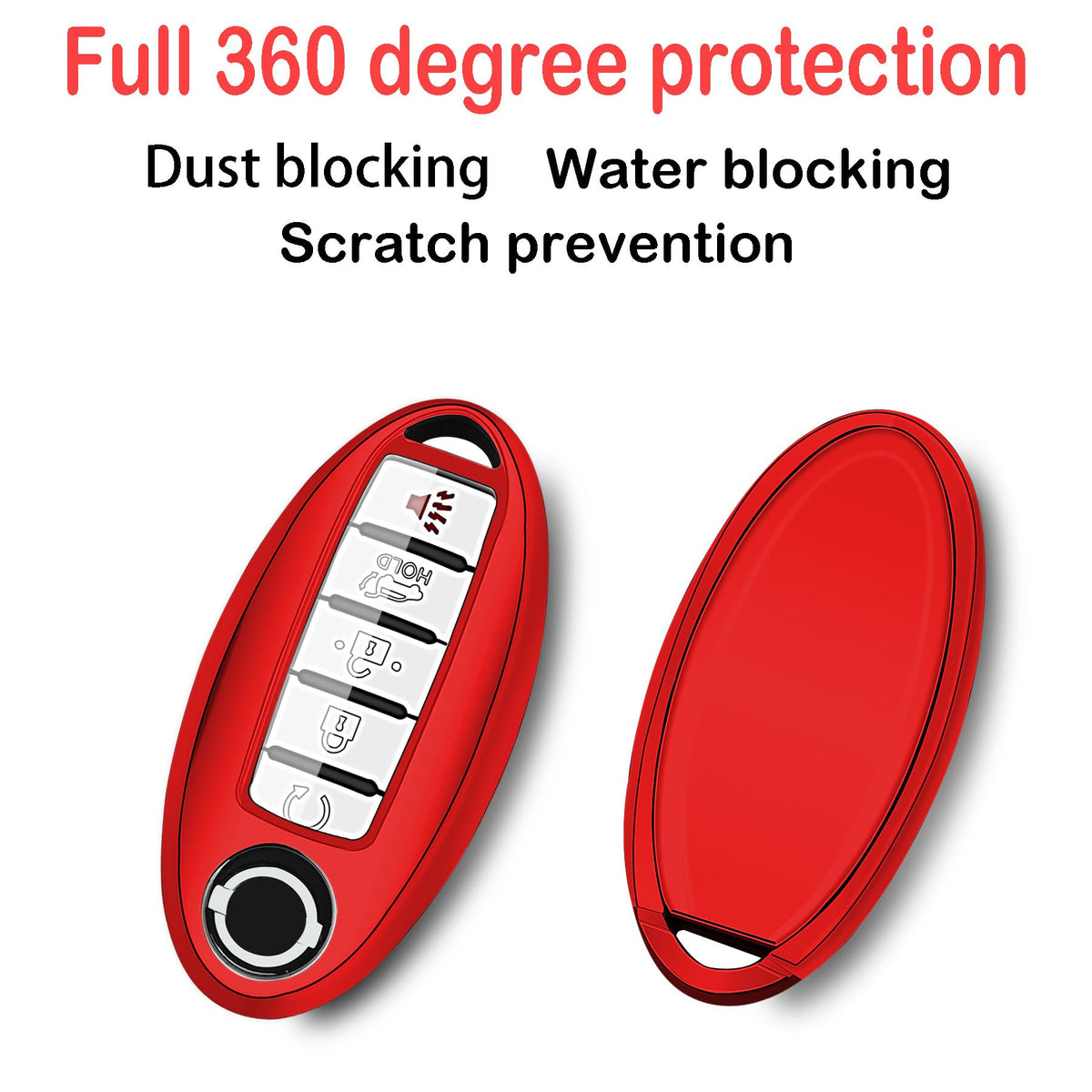 Kirsnda Key Fob Cover Case With Keychain,Soft Tpu Protect Car Key Compatible With Altima Rogue Maxima Pathfinder Ect 3/4/5 Buttons Remote Smart Key,Key Case-Red