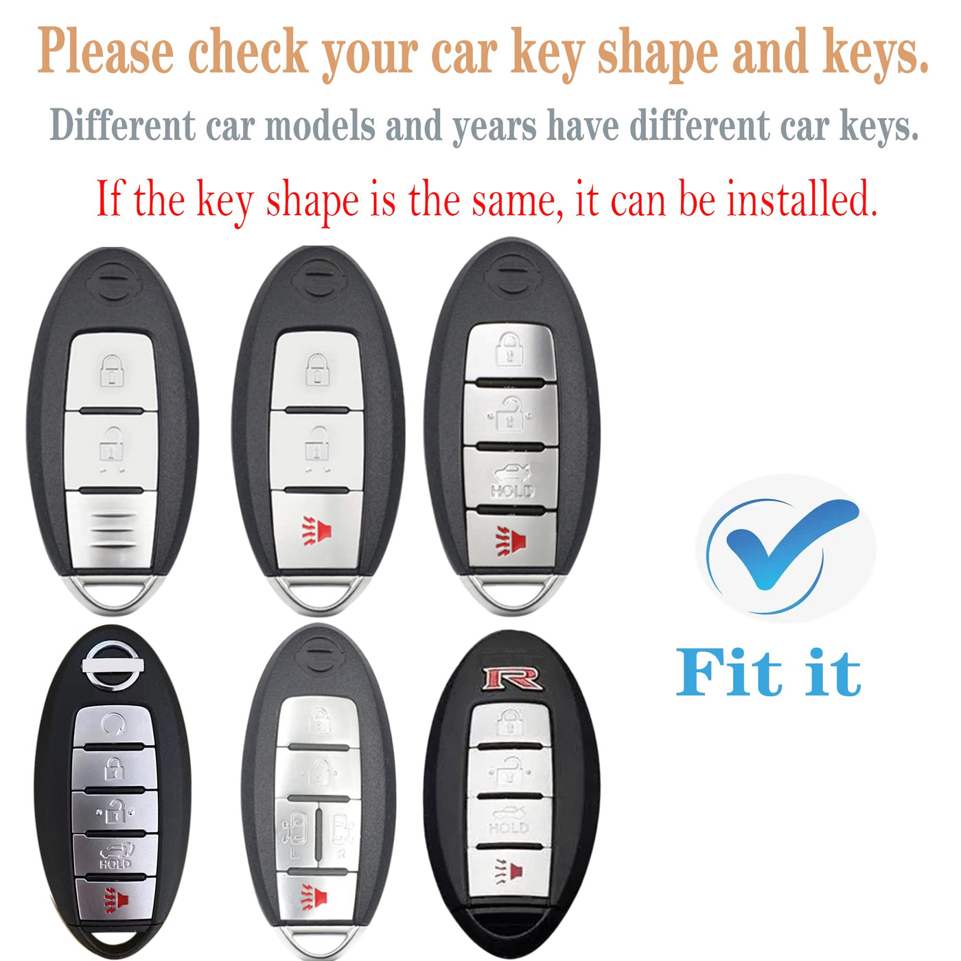 Q: Is the Kirsnda key fob cover compatible with my car?A: Yes, the Kirsnda key fob cover is compatible with various models including the 2017-2021 Altima, Rogue, Maxima, Sentra, Armada, Sedan, Murano, and Pathfinder, as well as select Infiniti models. Ensure that your car key has a similar shape to the ones shown in the product images for proper fitting.