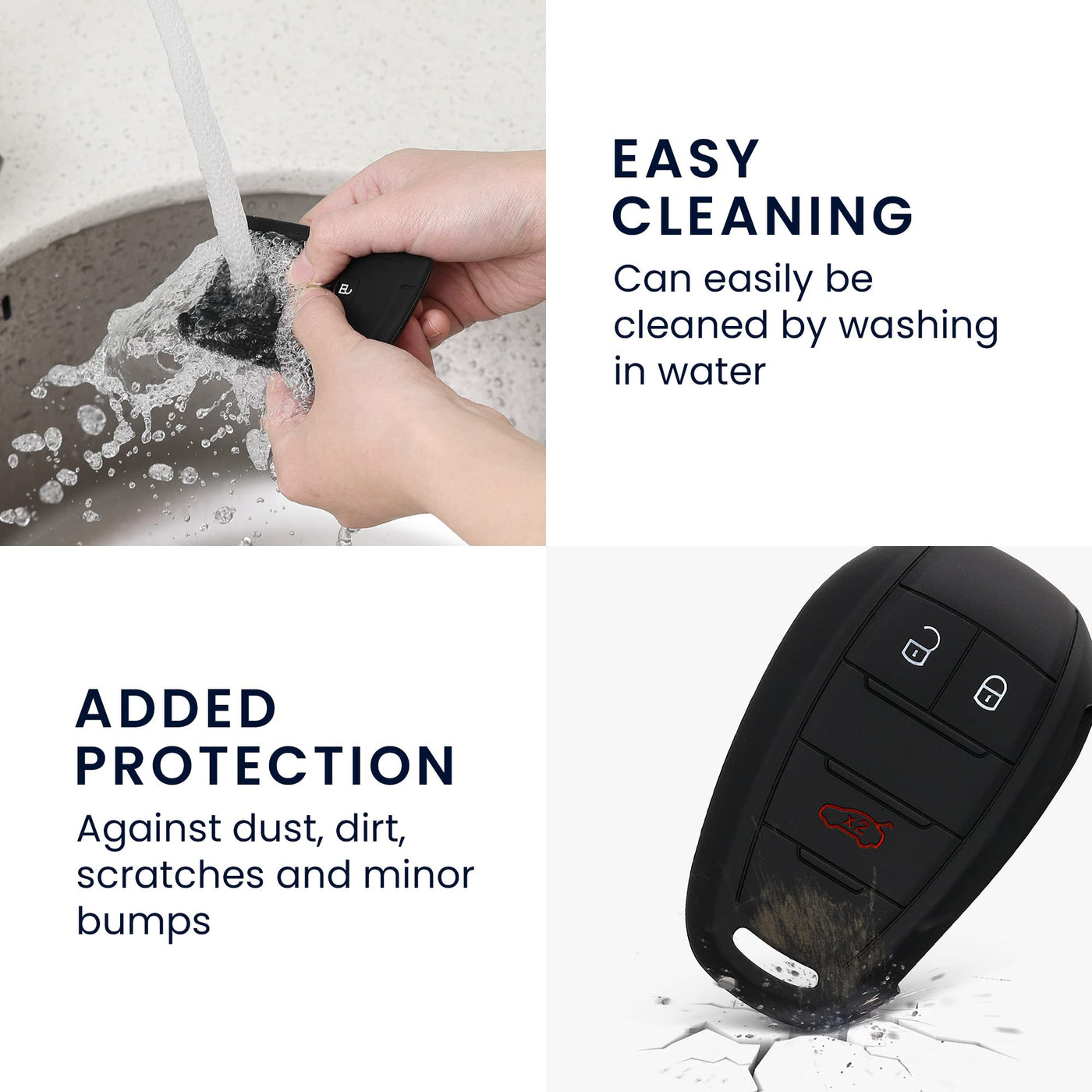 Q: What material is the key fob cover made from?A: The key fob cover is made from high-quality silicone rubber, which provides a soft and smooth touch while ensuring durability and flexibility.
