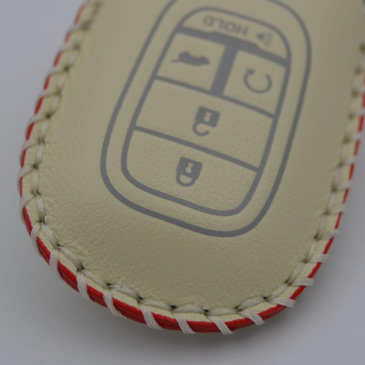 Leather Key Cover + Keychain + Hook Compatible With 2022 To 2025 Honda Civic Accord Cr-V Hr-V V Pilot Si Ex Ex-L Touring