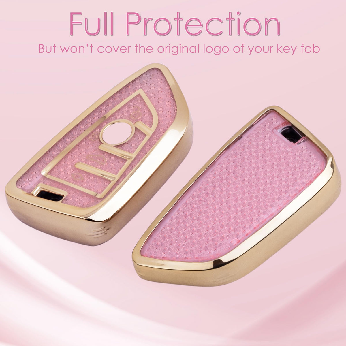 Fits Model: Specific Compatiable with BMW 2/5/6/7 Series and X1/2/3/5/6/7 M5 M6 GT3 GT5 Smart Key. Not Fit Compatiable with BMW i series m series, 2022/2023 2 series, 4 series,2024 7 series, (Note: The car model is for reference only. Pls confirm your car key shape and buttons patterns same as pictured before purchasing.) Quality Materials and Full Protection: Keys Protector Case snowflake texture inside, made of soft TPU with smooth surface, which is durable, anti-scratched, dirt-proof and rain-proof to protect your key fob completely. Unique Design: ensures worry-free signal transmission does not interfere with your remote start key Compatiable with BMW, and does not cover the original car logo,the Buttons are perfect fit. Perfect Match, Easy to Use: The snowflake texture car key holder and diamond heart keychain are very easy to install, and after installation, they are very strong to prevent the key from falling off or lost, and also make your car key more exquisite and elegant. Ideal Gifts: Package includes 1PC key case Compatiable with BMW, 1PC Diamond Bling Keychain and 1 Box, It's a perfect and practical gift for family, friends and colleagues on Mother's Day, Birthday, Christmas etc.