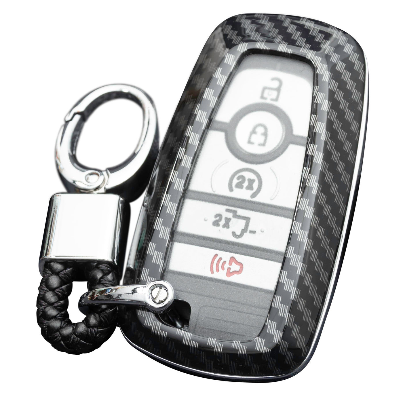 Mihumimo Carbon Fiber Car Key Fob Cover Case Chain Compatible With Ford F-150 Raptor Explorer Escape Fusion Bronco Sport Edge Li