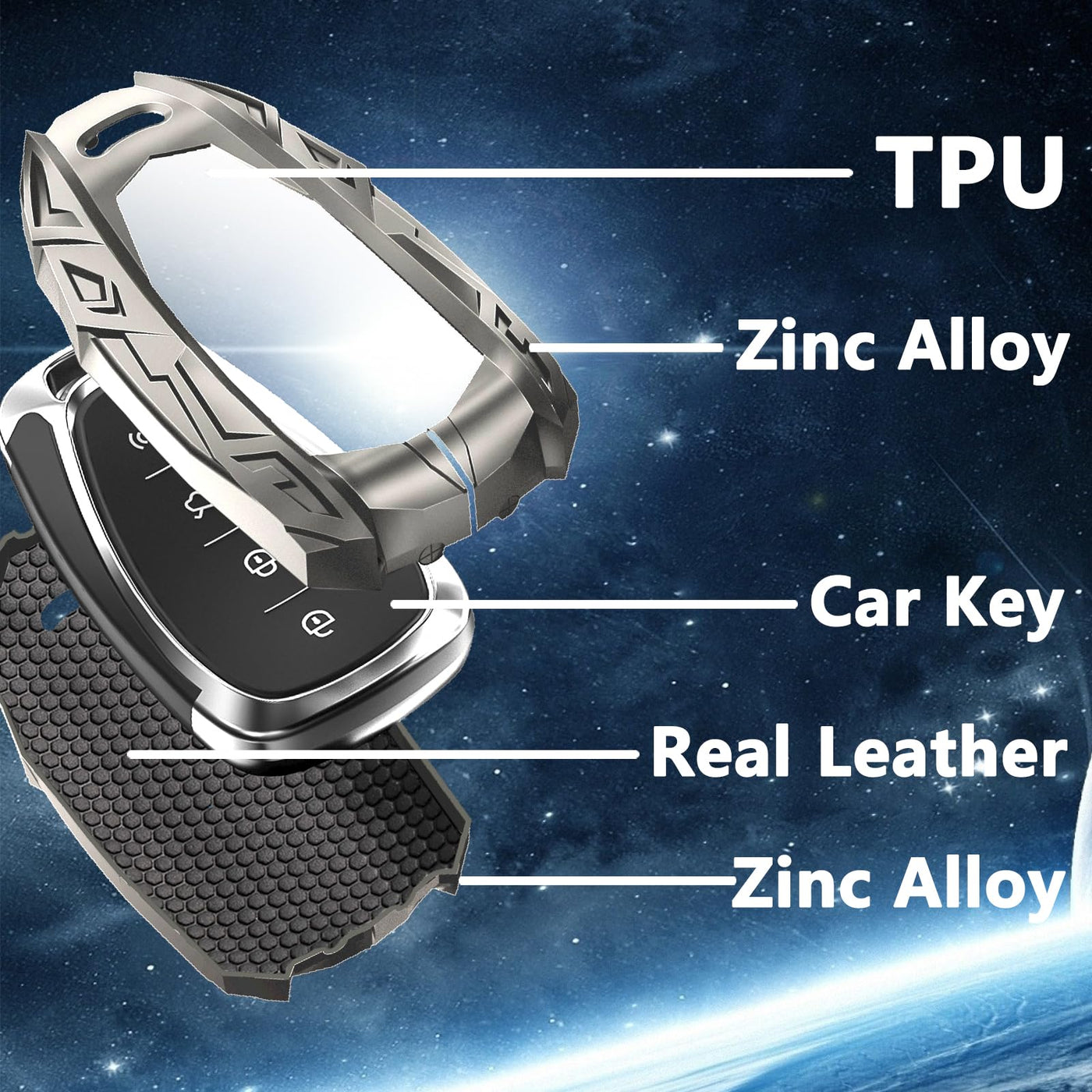 Q: What materials are used in the Ocezbiis key fob cover?A: The Ocezbiis key fob cover is made from premium TPU, zinc alloy, and genuine leather. This combination not only offers a stylish look but also maximizes protection against drops and damage.