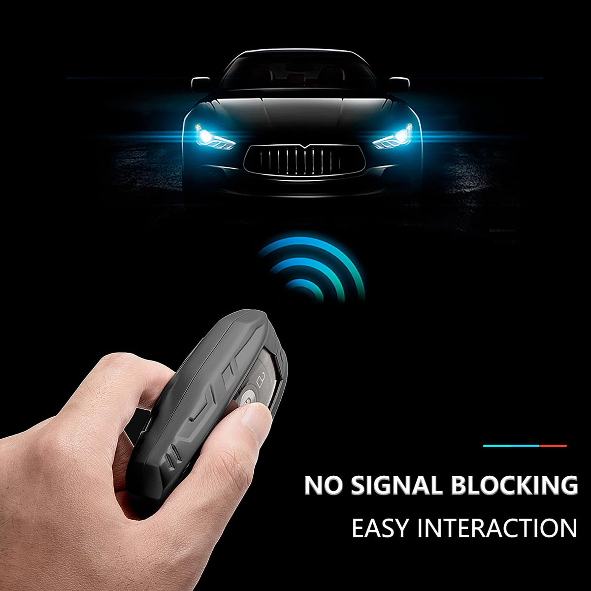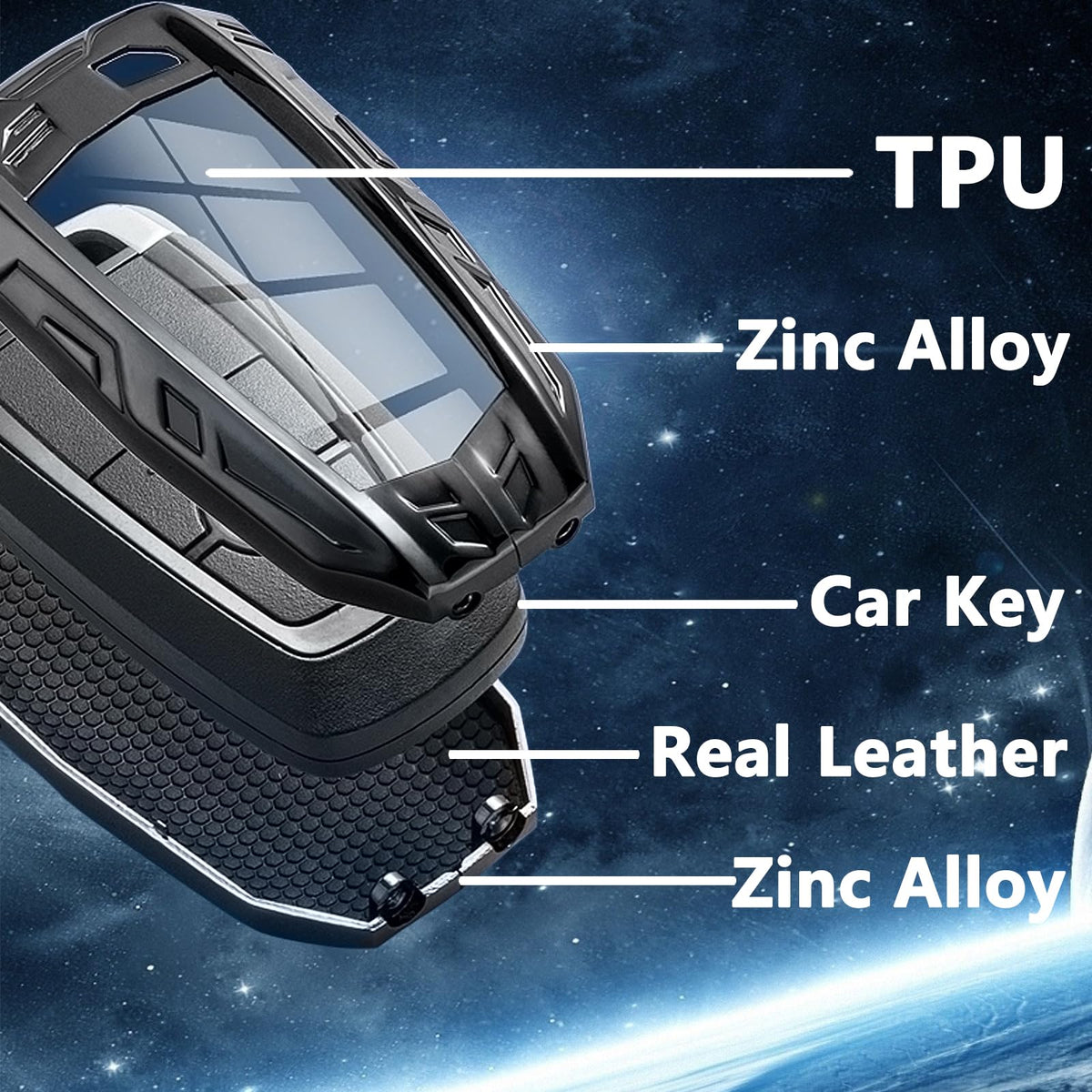 The Ocezbiis key fob cover made with premium TPU,zinc alloy and Real leather.The button position adopts TPU for more convenient and intuitive use of the key. The back is made of genuine leather, providing a better feel and user experience. The overall structure is made of zinc alloy, which can maximize the protection of the key and is resistant to falling and not being damaged.