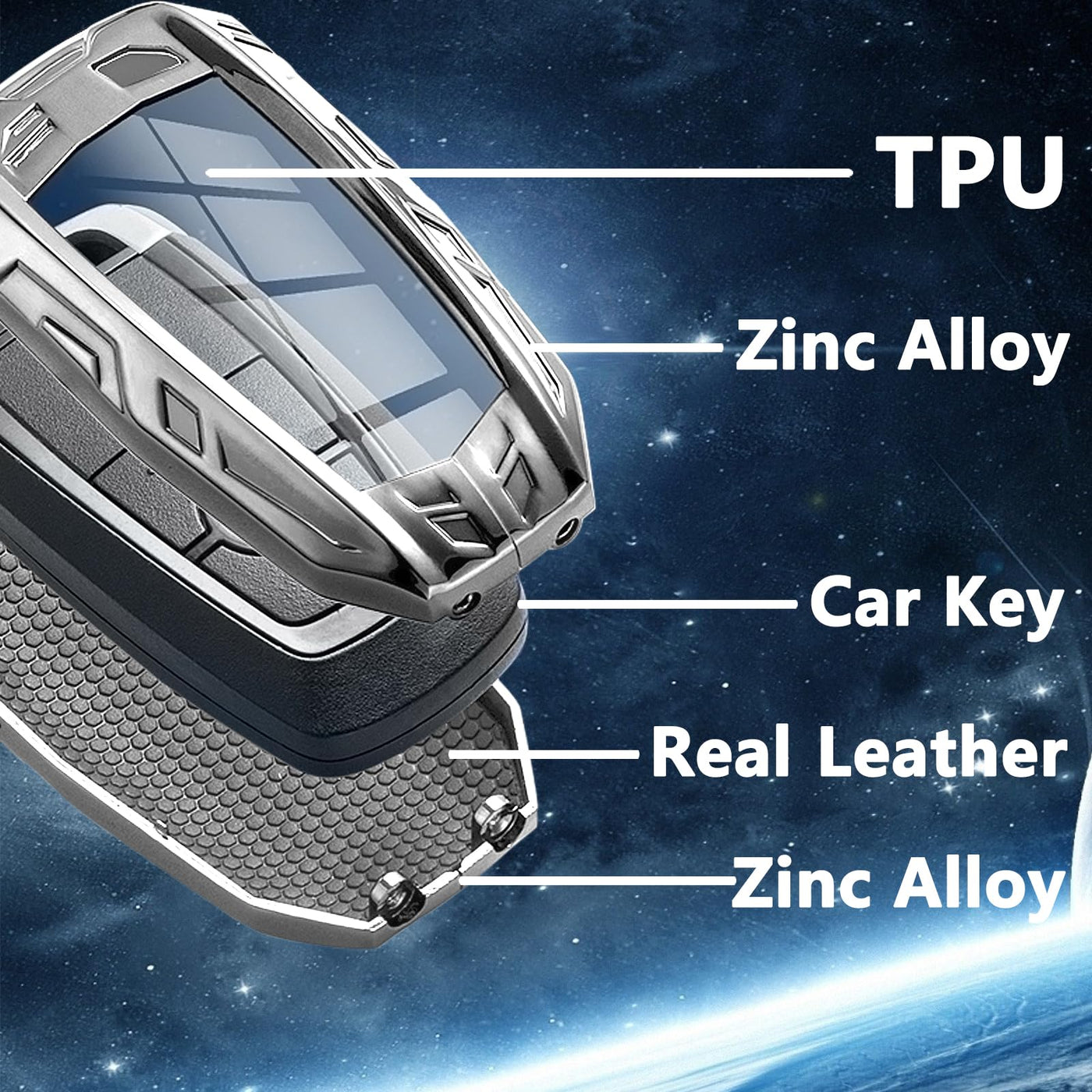 The Ocezbiis Key Fob Cover Made With Premium Tpu,Zinc Alloy And Real Leather.The Button Position Adopts Tpu For More Convenient And Intuitive Use Of The Key. The Back Is Made Of Genuine Leather, Providing A Better Feel And User Experience. The Overall Structure Is Made Of Zinc Alloy, Which Can Maximize The Protection Of The Key And Is Resistant To Falling And Not Being Damaged.