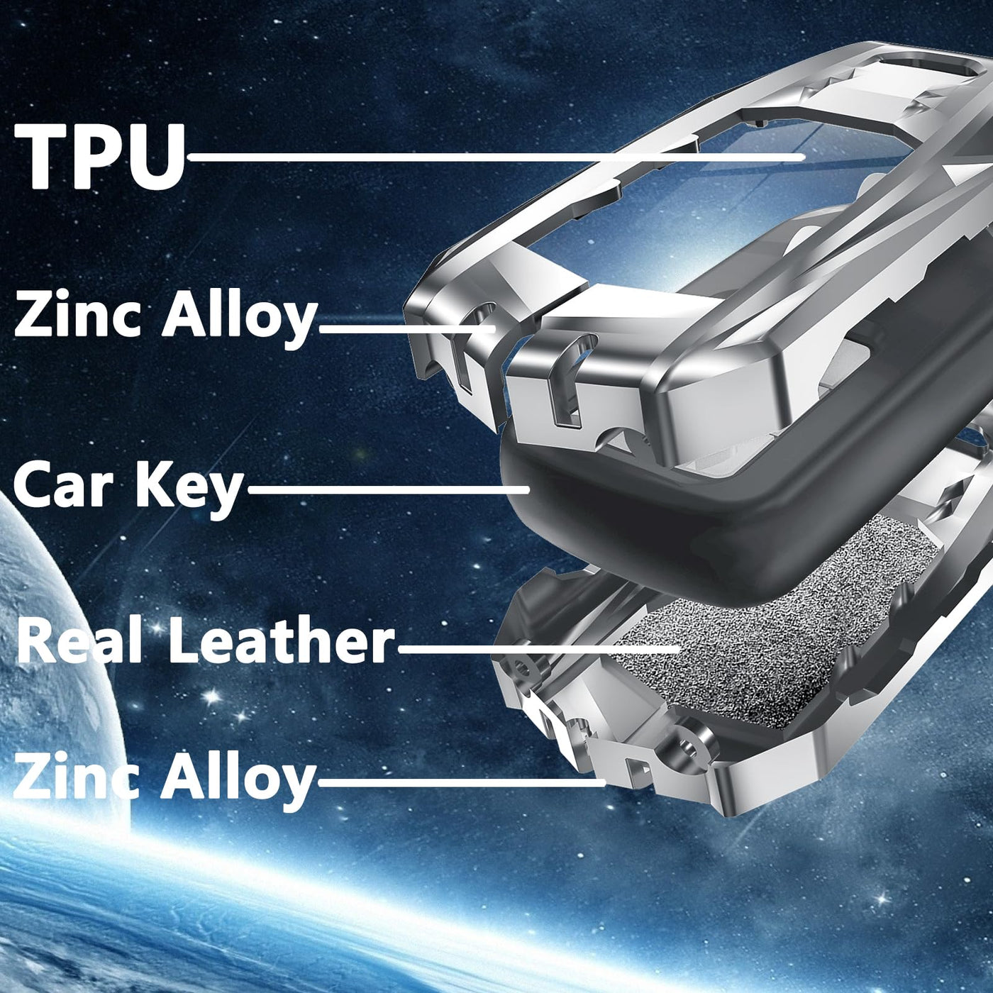 The Ocezbiis Key Fob Cover Made With Premium Tpu,Zinc Alloy And Real Leather.The Button Position Adopts Tpu For More Convenient And Intuitive Use Of The Key. The Back Is Made Of Genuine Leather, Providing A Better Feel And User Experience. The Overall Structure Is Made Of Zinc Alloy, Which Can Maximize The Protection Of The Key And Is Resistant To Falling And Not Being Damaged.