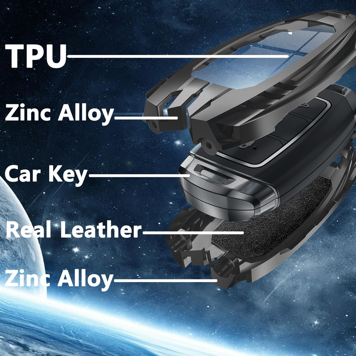 The Ocezbiis Key Fob Cover Made With Premium Tpu,Zinc Alloy And Real Leather.The Button Position Adopts Tpu For More Convenient And Intuitive Use Of The Key. The Back Is Made Of Genuine Leather, Providing A Better Feel And User Experience. The Overall Structure Is Made Of Zinc Alloy, Which Can Maximize The Protection Of The Key And Is Resistant To Falling And Not Being Damaged.