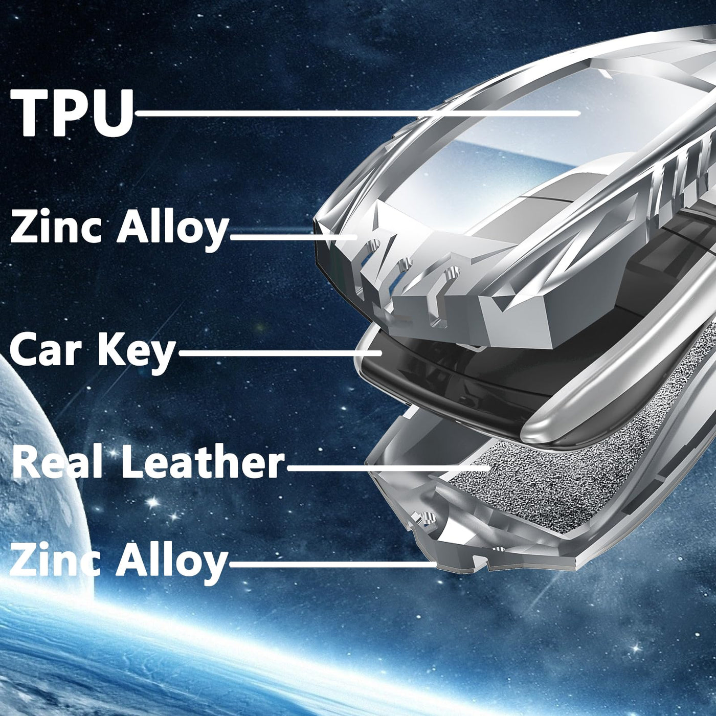 Q: What materials are used in the Ocezbiis key fob cover?A: The Ocezbiis key fob cover is crafted from premium TPU, zinc alloy, and genuine leather. The TPU ensures easy access to buttons, while the zinc alloy provides durability and protection against drops, and the leather enhances the overall feel and aesthetic.