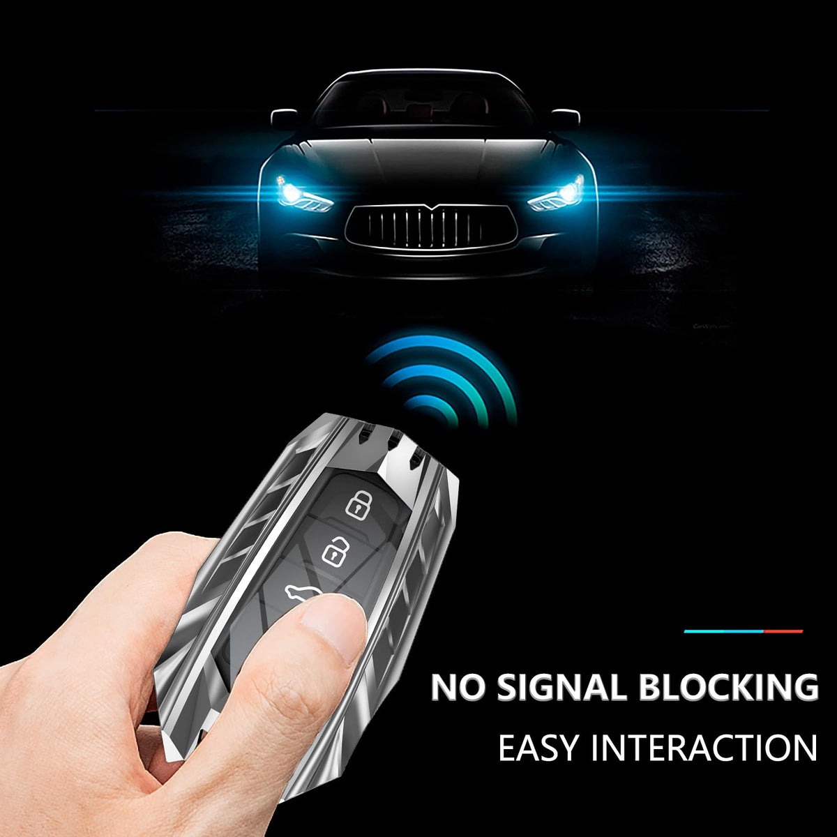Q: How does the Ocezbiis key fob cover provide protection?A: The design of the Ocezbiis key fob cover provides full protection from dust and accidental drops. Its sturdy zinc alloy structure, along with the TPU and leather materials, help avoid scratches and damage, while not interfering with the key's signal.