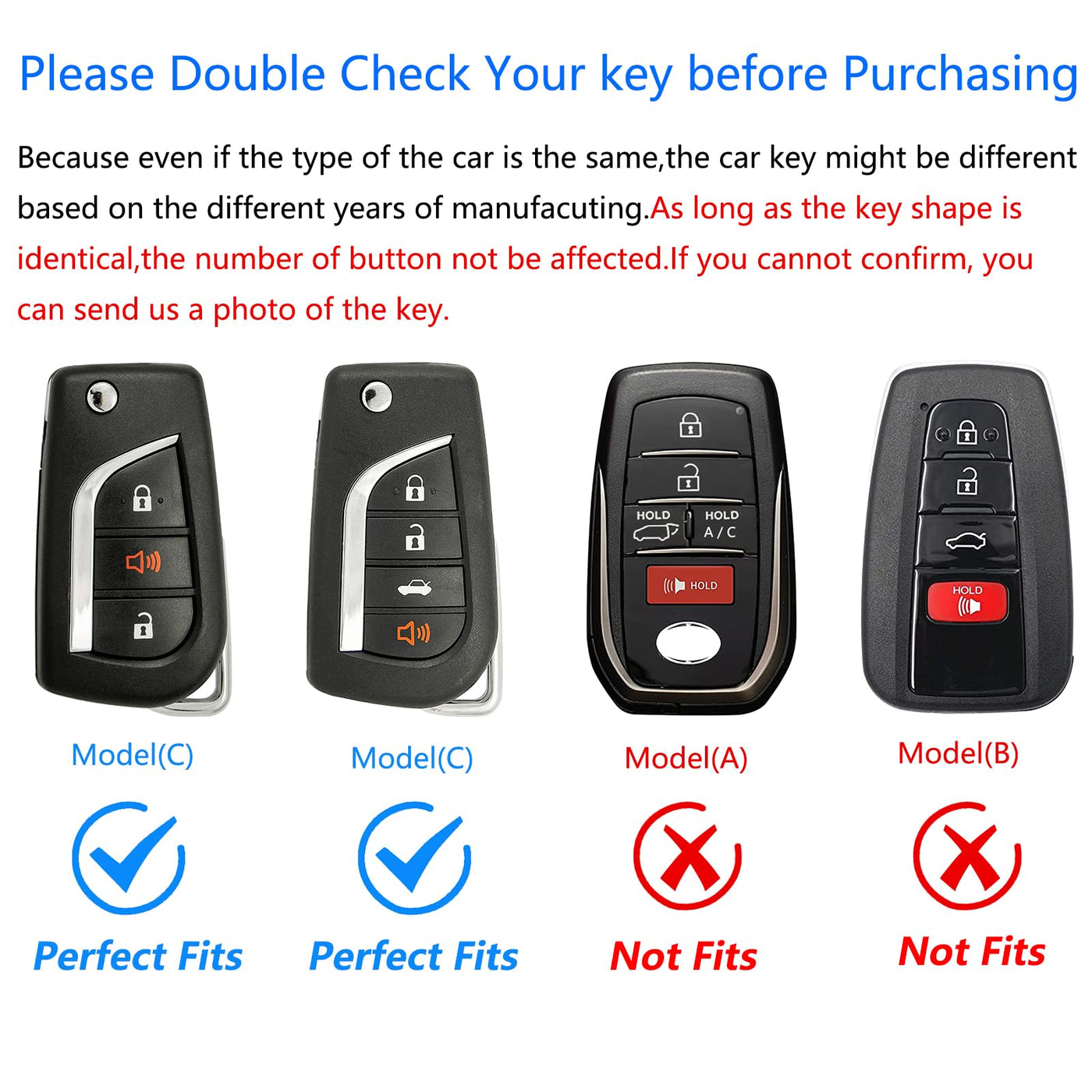 Q: Is the Ocezbiis key fob cover compatible with all Toyota models?A: The Ocezbiis key fob cover is designed to fit various Toyota models, including Fortuner, Tundra, RAV4, Highlander, Challenger, Camry, Corolla LE/SE, Tacoma, Levin, and 4Runner. However, please ensure your key shape matches the product image, as key designs may vary by manufacturing year.