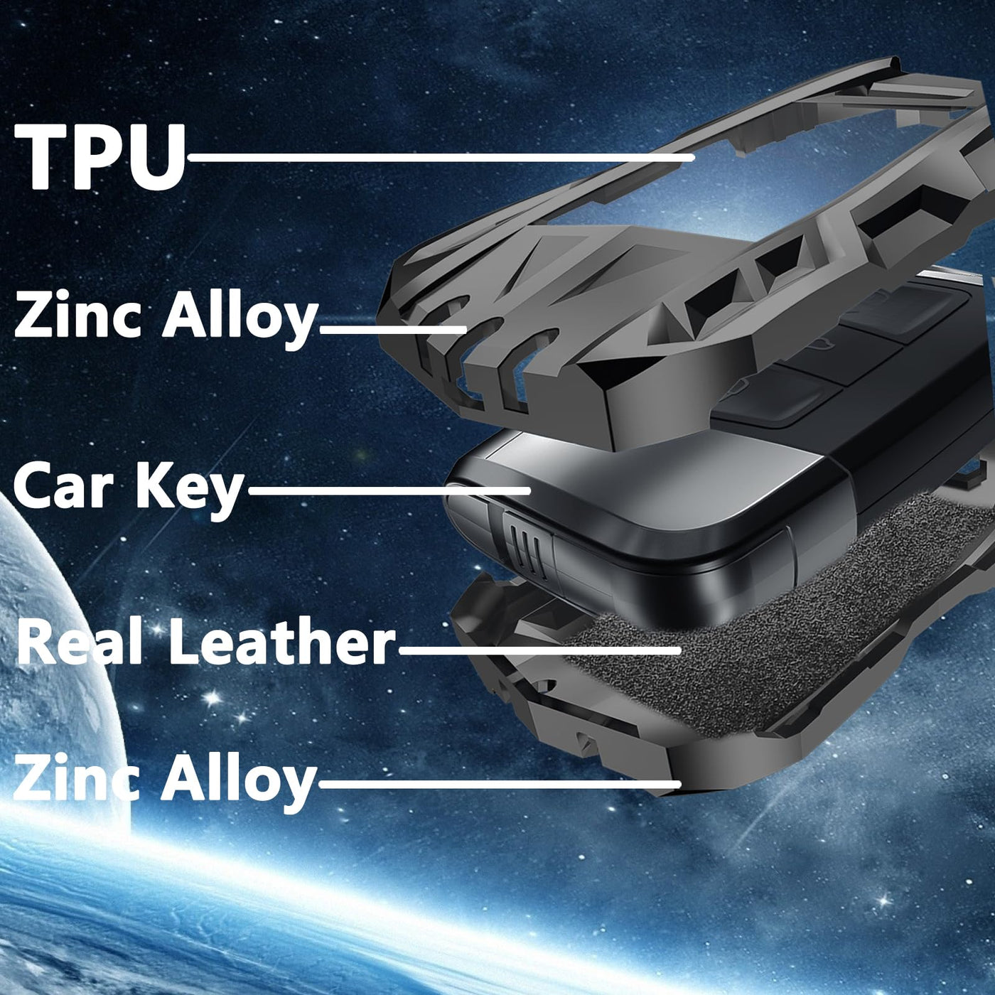 The Ocezbiis key fob cover made with premium TPU,zinc alloy and Real leather.The button position adopts TPU for more convenient and intuitive use of the key. The back is made of genuine leather, providing a better feel and user experience. The overall structure is made of zinc alloy, which can maximize the protection of the key and is resistant to falling and not being damaged.