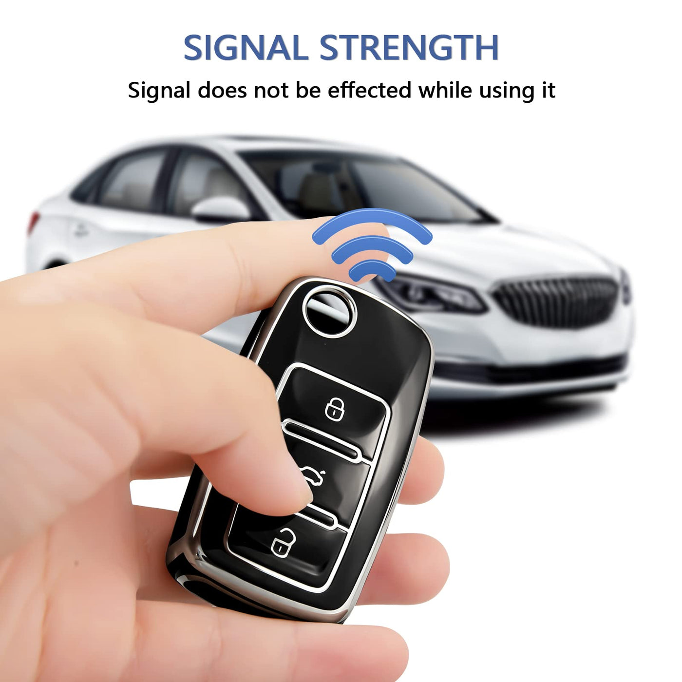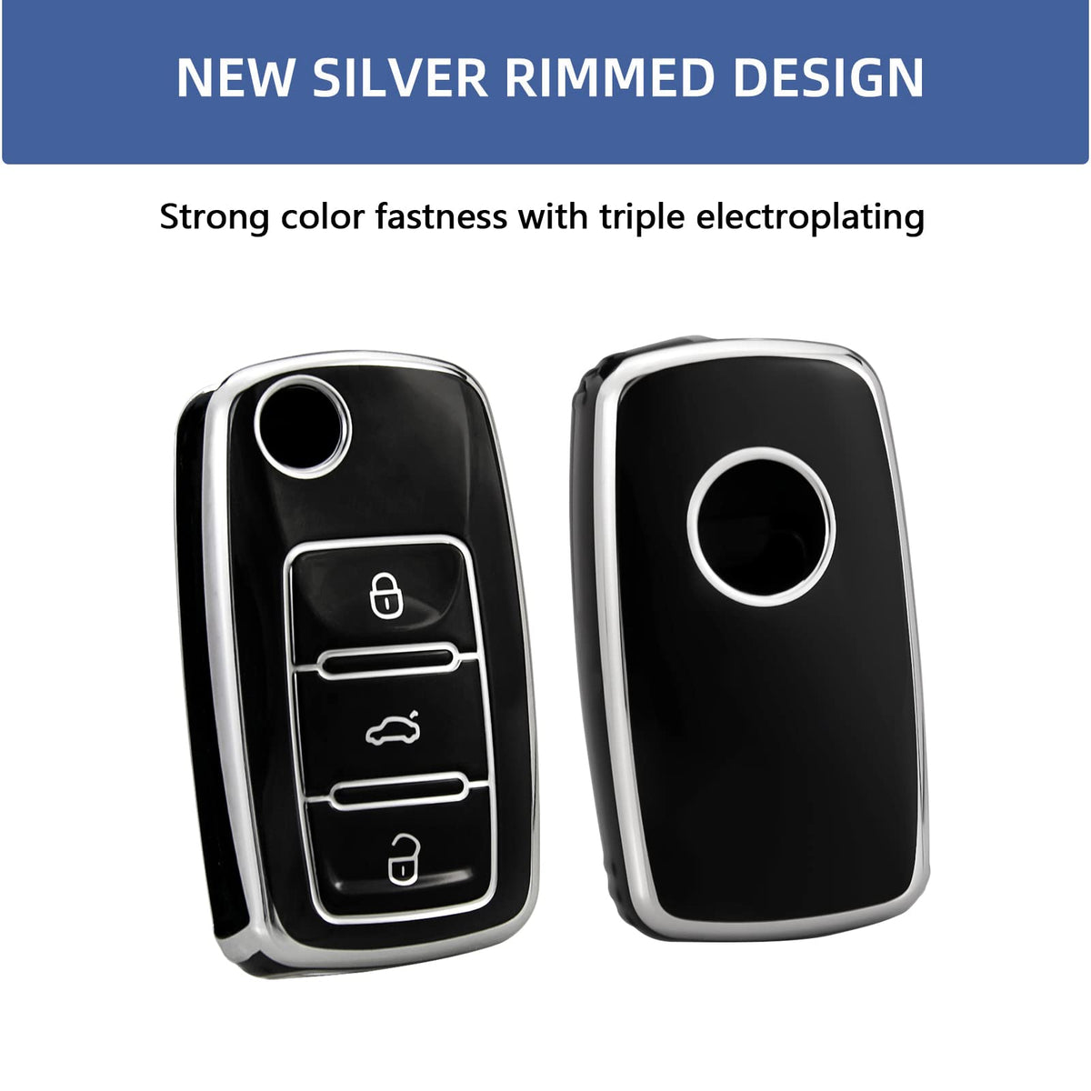 OFFCURVE for Volkswagen Key Fob Cover, Soft TPU Full Protector Key Fob Case for VW Jetta Golf Polo Passat MK8 Tiguan Beetle Car