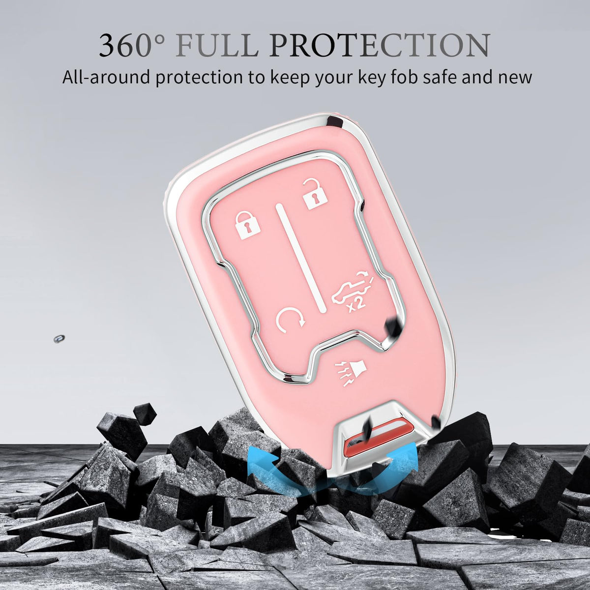 OFFCURVE Key Fob Cover with Keychain Compatible with GMC Key Fob Case for Chevy Suburban Tahoe Terrain Acadia Yukon Silverado GM