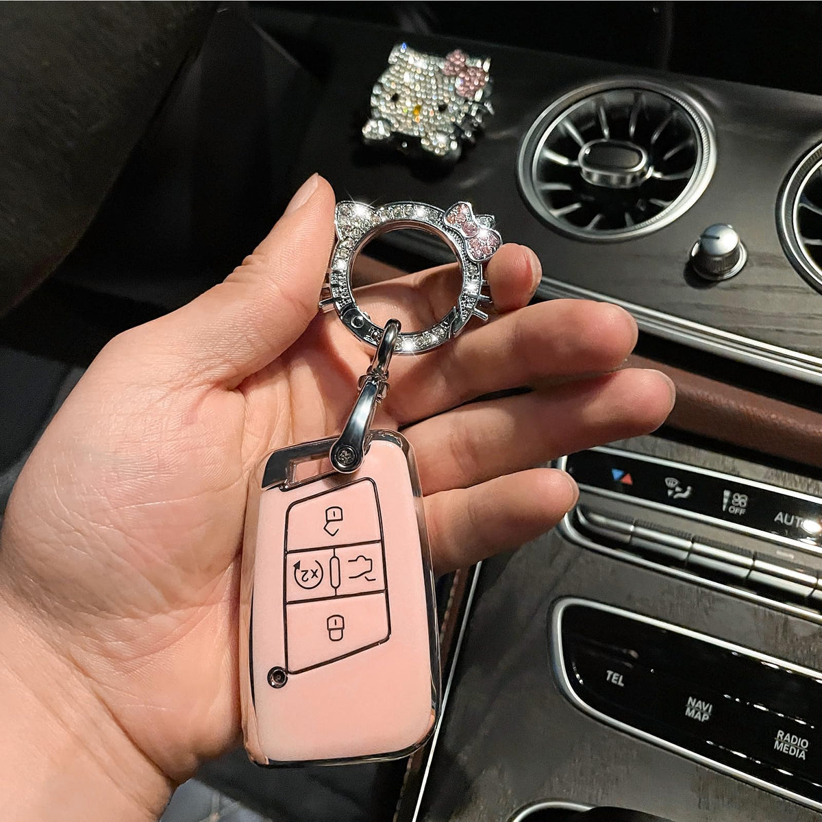 Pangpai Pink Car Accessories 3 Pcs For Vw Volkswagen Tiguan Atlas Jetta Passat Golf Alltrack Key Fob Cover With Bling Keychain C