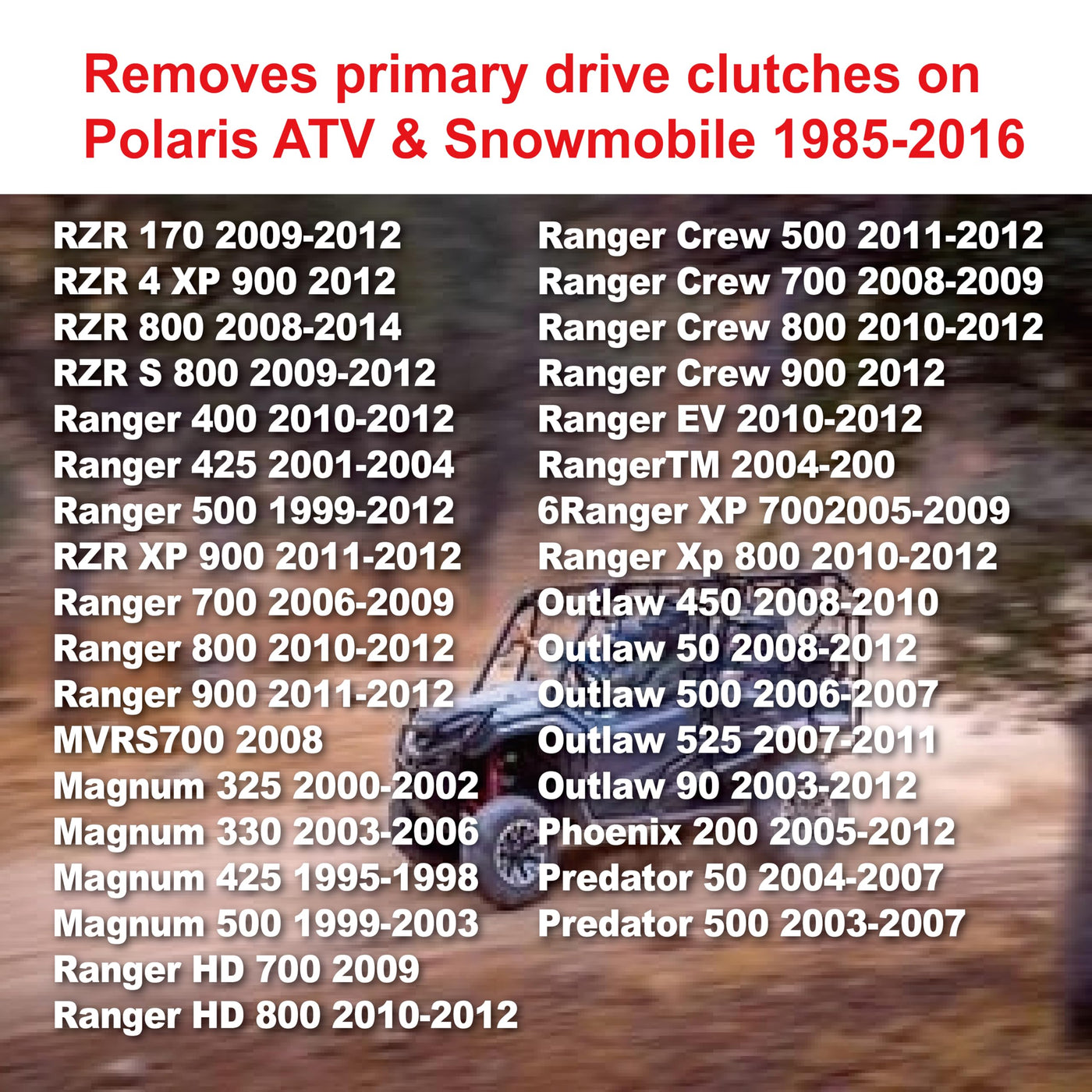 Primary& Secondary Drive Clutch Puller for Polaris All Models Ranger,RZR,Sportsman,General,Scrambler,Worker,Xpedition,Trail Boss