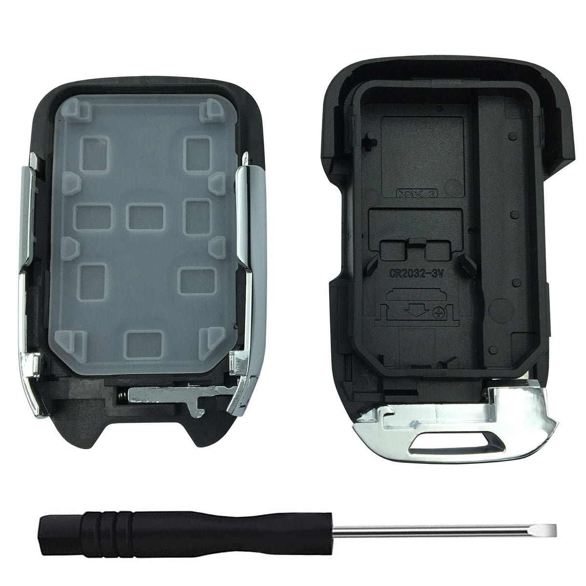 Fitment: 2019 2020 2021 2022 Chevy silverado and GMC Sierra 1500 2500HD 3500HD etc.And other model with the same specifications of key blank and battery holder listed as below section... Please check your key look the same as the one in our product picture above before you purchase. Important Notice 1.This item isn't a remote,it is just a remote key shell case replacement. 2.There is NO interior (remote/electronics/transponder chip)unit inside. 3.Please check your key look the same as the one in our product picture above before you purchase. Package Includes: 1 X Remote key shell+1 X screwdriver