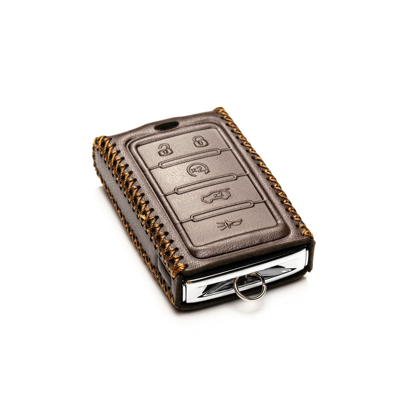 Vitodeco Genuine Leather Smart Key Fob Case Compatible With Jeep Wagoneer, Jeep Grand Cherokee 2022-2025 (New 5-Button, Brown)