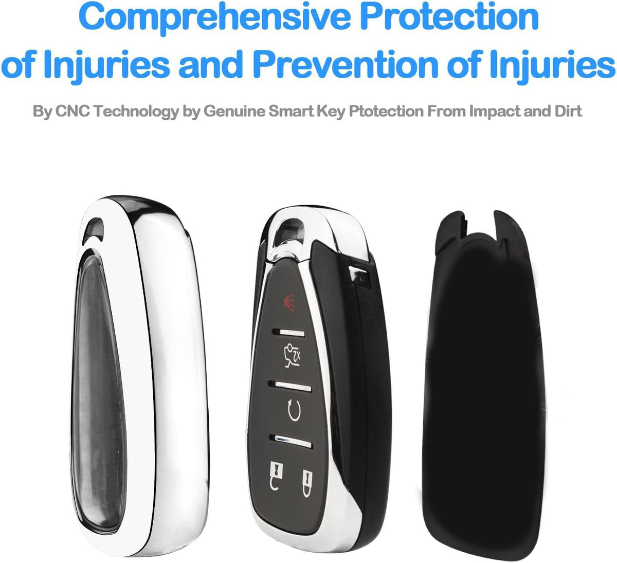 Xiyang Trade For Chevy Key Fob Cover With Keychain,Soft Tpu Full Protector Key Shell Case For Malibu Camaro Equinox Blazertraverse Cruze Sonic Volt Spark Bolt Trax 3 4 5 Button Holder-Silver
