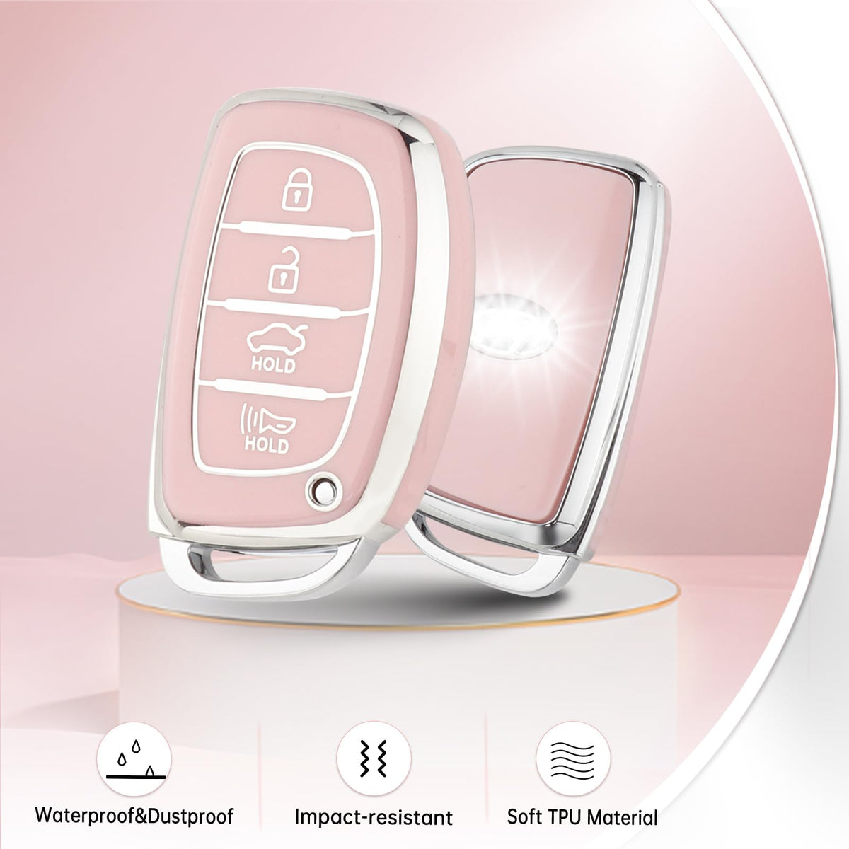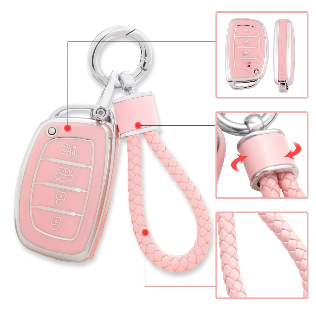YO&YOYE for Hyundai Key Fob Cover with Keychain, Pink Soft TPU Key Case Protection Shell Fit for lantra Ioniq Sonata Tucson Elan
