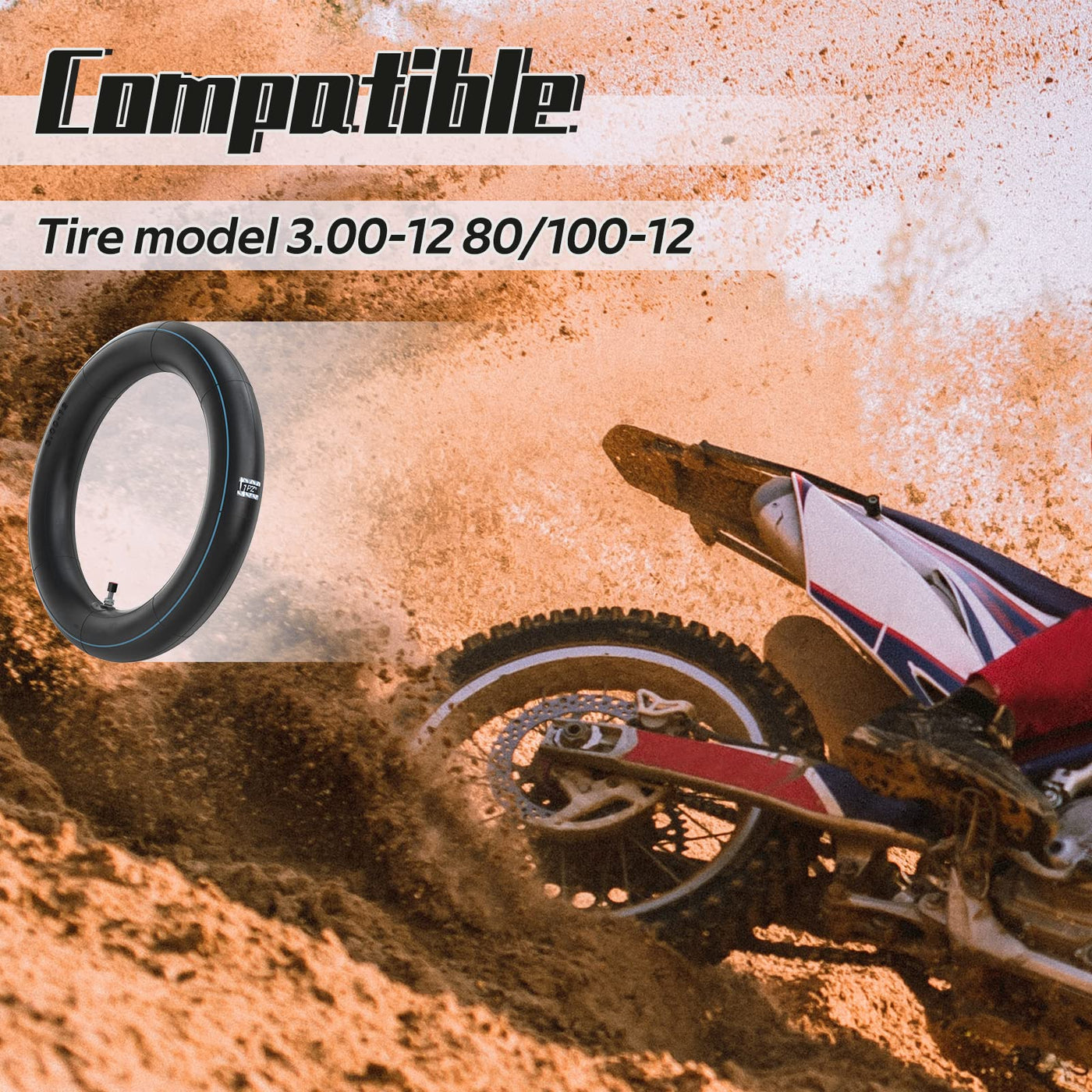Q: What sizes does this inner tube fit?A: This inner tube fits the universal sizes of 3.00-12" and 80/100-12", making it suitable for various off-road applications.