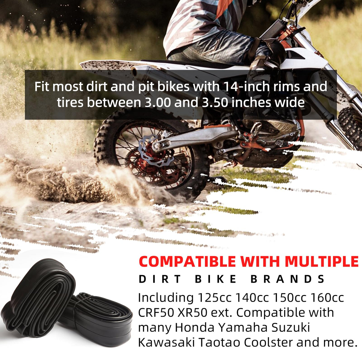 Ar-Pro (2-Pack) 3.00/3.50-14 90/100-14 Dirt Bike Inner Tubes With Tr4 Straight Valve, Replacement Heavy Duty Inner Tube For 3.50