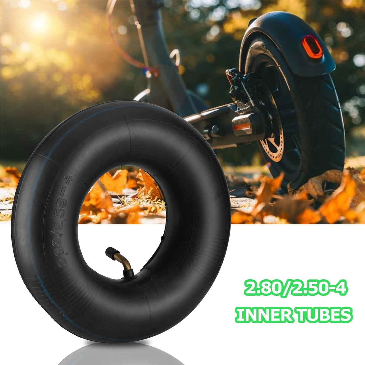 Nigoolata Premium Replacement Tire Inner Tubes - 2 Pack - 2.80/2.50-4''- For Scooters, Wheelbarrows, Hand Trucks, Dollies, Lawn Mowers, Yard Trailers - Utility Tools Good Replacement Inner Tubes For Used Scooters, Wheelbarrows, Hand Trucks, Dollies, Lawn Mowers, Tractors, Flat Carts, Yard Trailers, Trolleys, Wagons, Generators, Snow Blowers, Pressure Washers, Air Compressors, Wood Chippers Tire, Etc. Universal Fits Vehicles With 2.80/2.50-4'' Tires. Also Measured As 9X3.50-4, 2.80/2.50-4, 2.50-4, 2.80-4, 3.00-4. Features: 1.These Tire Tubes Are Made From Premium Heavy Duty Rubber. 2.Good Air Tightness, Good Temperature Resistance, Anti-Aging And Built To Last. 3.Each Tire Tubes Surface Has Clear Vertical Lines, Non-Slip And Wear-Resistant. 4.Metal Bent Valve Stem With Air Cap, Enhanced Air Tightness. 5.Good Shock Absorption Performance, Safer Driving. 6.Easy To Replace, No Need To Replace The Whole Tire. 7.Maximum Inflation Is 30 Psi. 8.2.80/2.50-4'' Inner Tube Can Fit Razor Scooter E300, Pocket Rocket, And Chopper. Specification: Product Type: Replacement Inner Tubes Fitment: Universal Fit 2.80/2.50-4'' Tires, Such As Wheelbarrows, Hand Trucks, Dollies, Mowers, Etc. Material: Rubber Valve Type: Bent Valve Stem Size: 2.80/2.50-4'' Color: Black Package Included: 2 Pack 2.80/2.50-4'' Inner Tubes