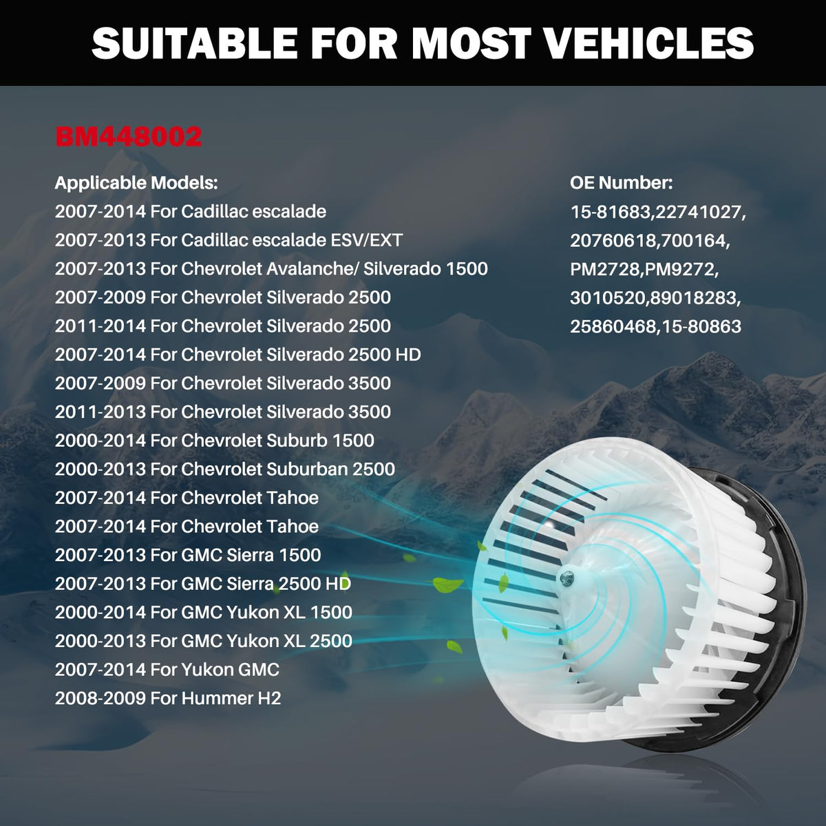 Aspligo 700164 Front Ac Heater Blower Motor Fit For Cadillac Escalade 2007-2014, For Chevy Avalanche 2007-2013, Silverado 1500 2