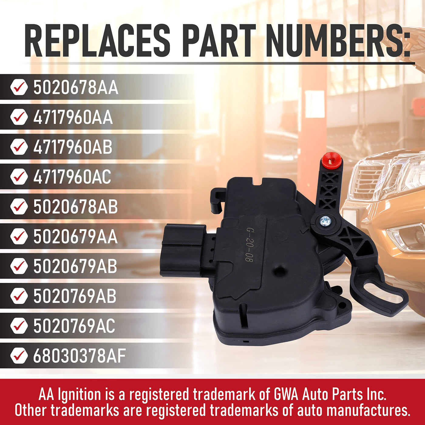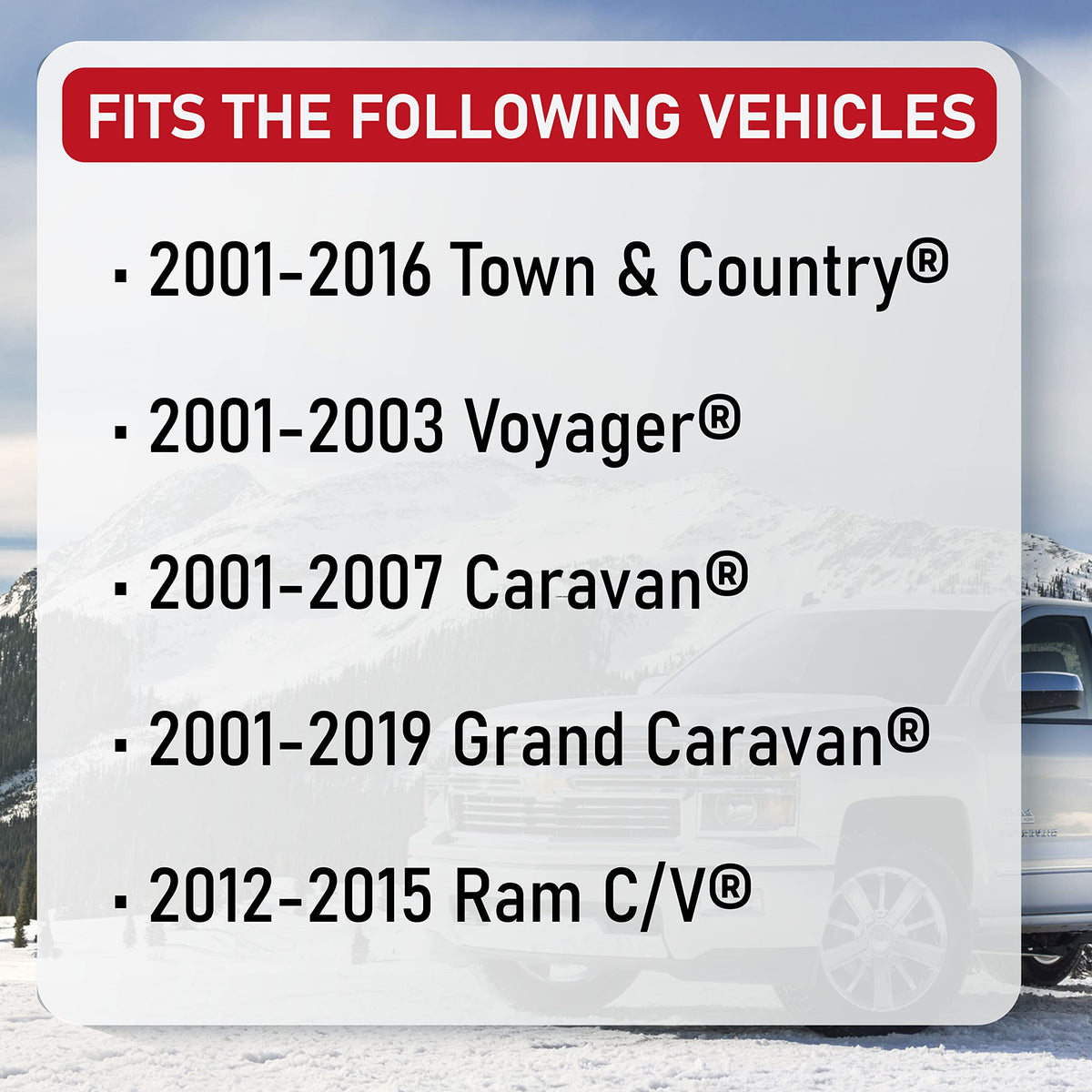 The sliding door lock actuator control the locks on your Caravan, Grand Caravan, Voyager or Town & Country. Over time the door lock actuators on the sliding door of either side of the van fail resulting to either of doors not locking or unlocking electronically. The sliding door lock actuator can easily be installed one either side of the rear sliding door and can be located easily by removing the door panel and a few screws. It includes both lever for left or right side door applications. Compatible with the following vehicles: 2001-2016 Town & Country 2001-2003 Voyager 2001-2007 Caravan 2001-2019 Grand Caravan 2012-2015 Ram C/V Replaces part number: 5020678AA, 4717960AA, 4717960AB, 4717960AC, 5020678AB, 5020679AA, 5020679AB, 5020769AB, 5020769AC, 68030378AF, 68030379AA, 68030379AB, 68030379AC, 68030379AD, 68030379AE, 68030378AC, 68030378AD, 68030378AE, 68030380AA, 68030380AB, 68030380AD This is a compatible replacement part manufactured by AA Ignition. This sliding door lock actuator is NOT a genuine OEM part. Vehicle makes and their associated vehicle models and part numbers are used in this listing only to identify the vehicles this sliding door lock actuator fits.