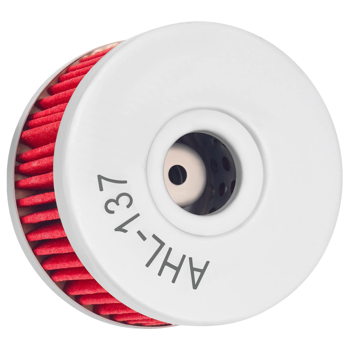 Q: What are the features of the AHL 137 Oil Filter?A: This oil filter features a high-performance design for outstanding filtration, is ideal for high-end synthetic motor oil, and allows for high oil flow rates. It also replaces part numbers KN137 and HF137, ensuring compatibility with various Suzuki models.