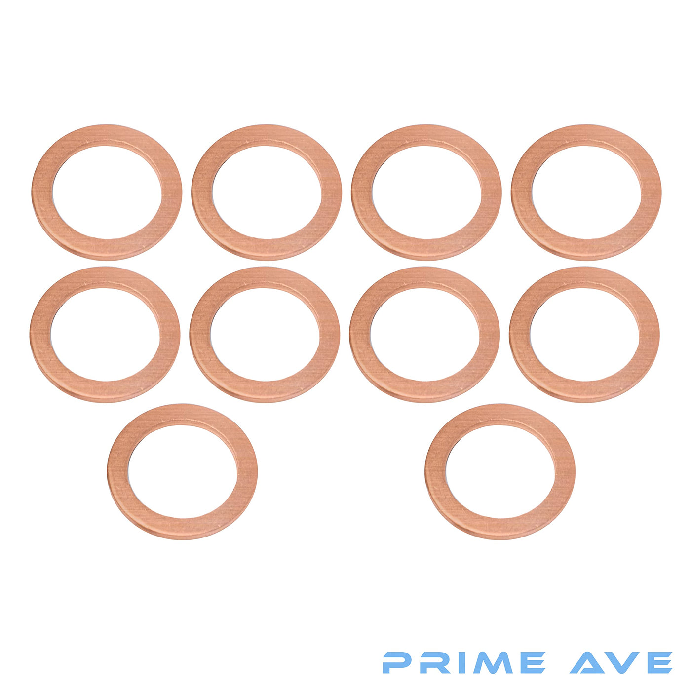 Prime Ave 14Mm Copper Oil Drain Plug Washer Gaskets Compatible/Replacement For Mercedes Part#: 007603-014106 (Pack Of 10)