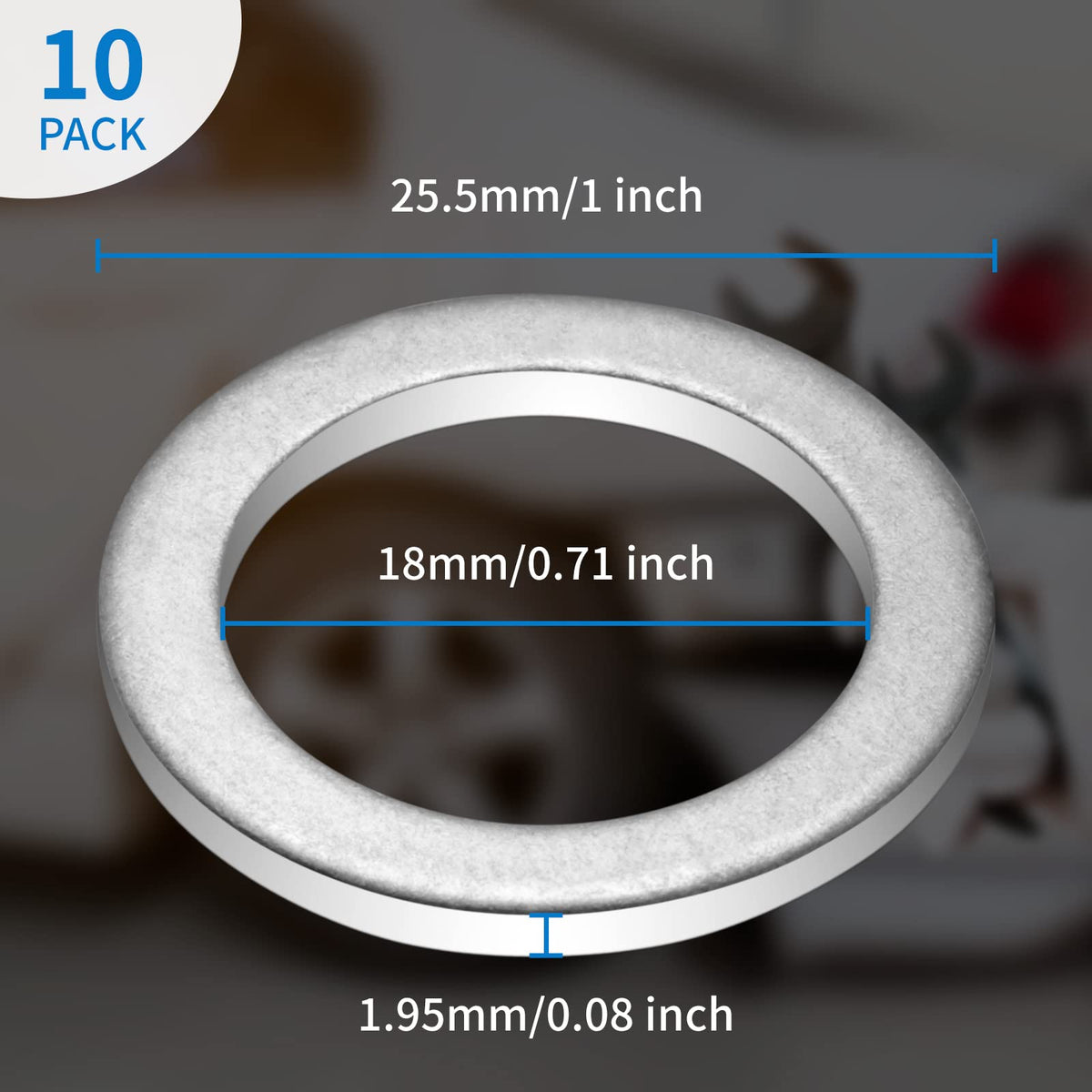 Q: What are the dimensions of the crush washer?A: The Transmission Fluid Drain Plug Crush Washer has an outside diameter of 25.5 mm (1 inch), an inside diameter of 18 mm (0.71 inch), and a thickness of 1.95 mm (0.08 inch), ensuring a perfect fit for your vehicle's drain plug.