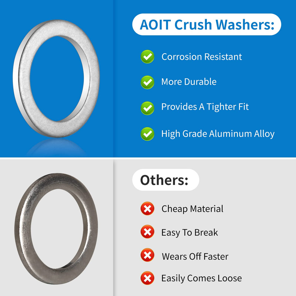 Q: What advantages does this crush washer offer over plastic or rubber seals?A: This aluminum crush washer provides superior sealing performance compared to plastic or rubber seals. Its snug design ensures a leak-free fit, protecting your engine from oil drips and enhancing overall maintenance efficiency.