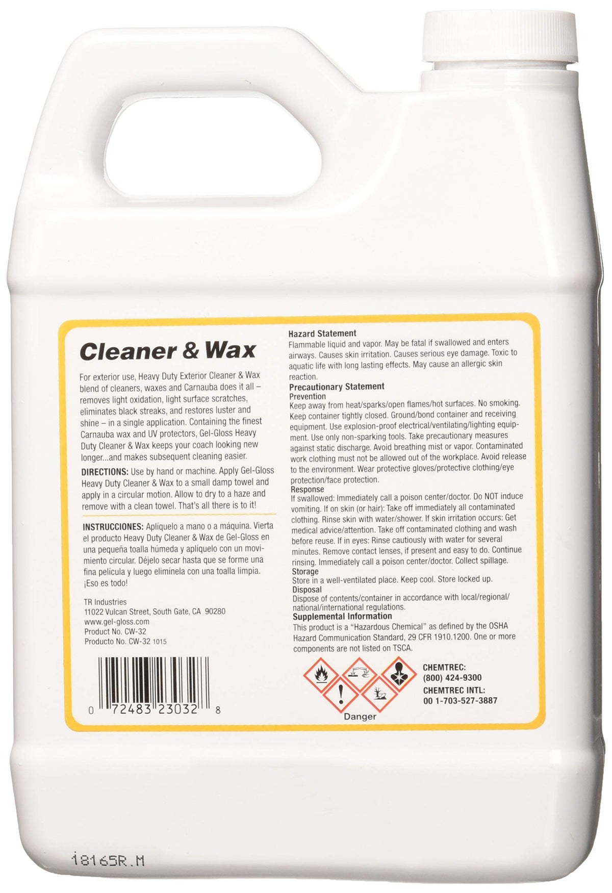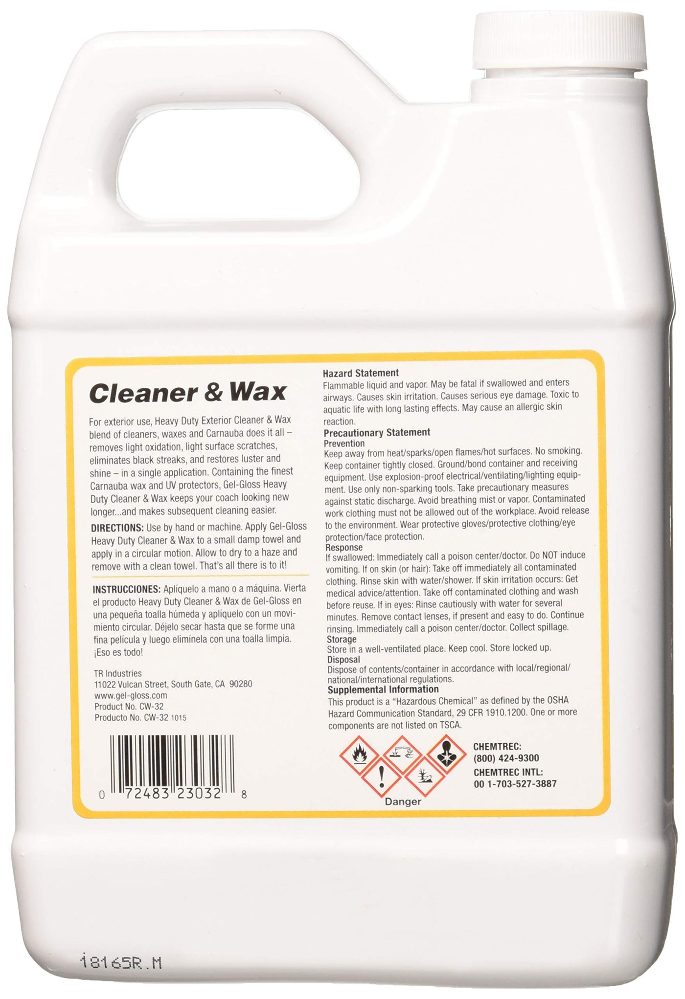 Tr Industries Cw32 Gel Gloss Heavy Duty Rv Cleaner And Wax - 32 Oz.