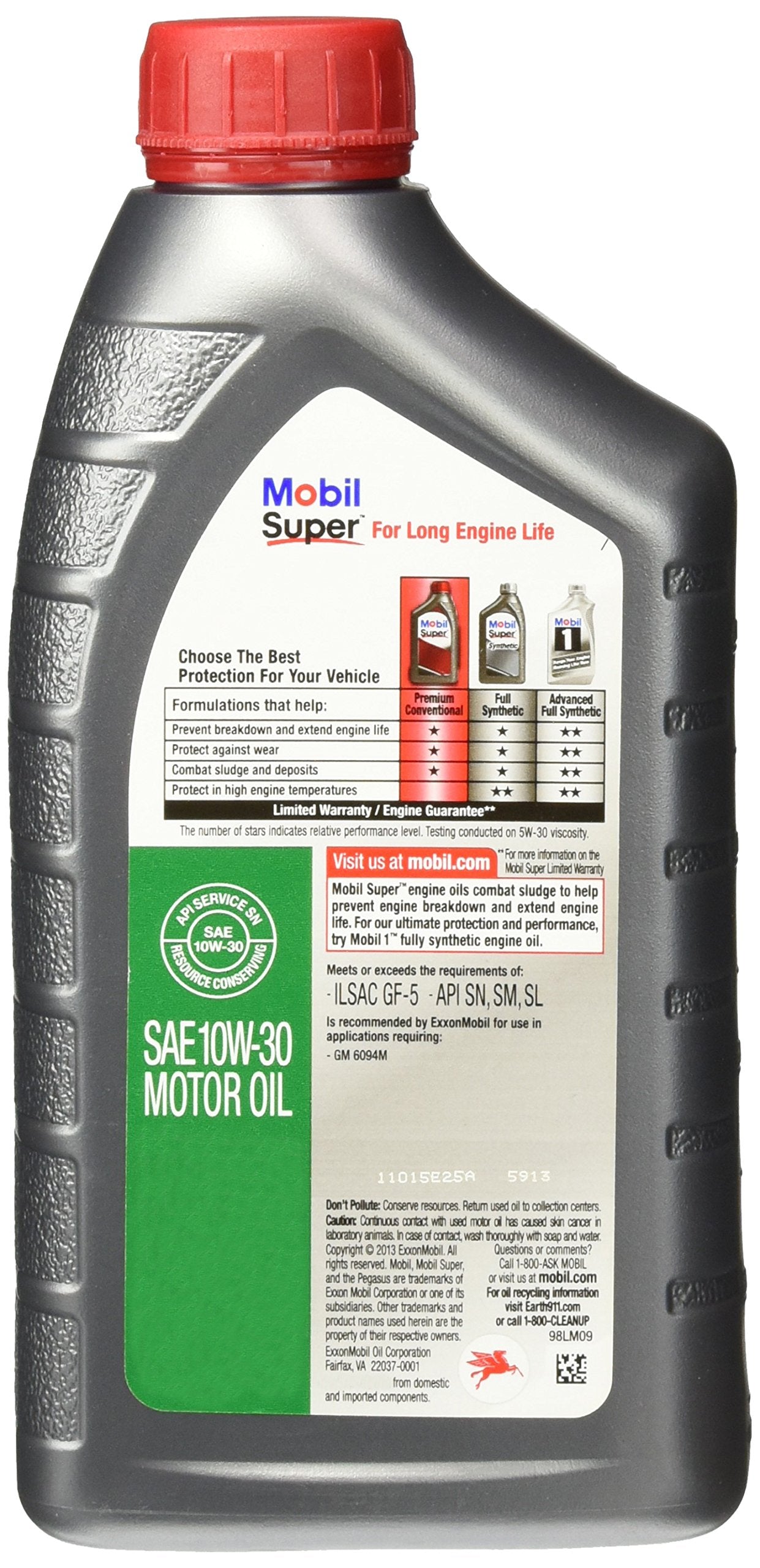 Motor Oil, Conventional Base, Size 1 Qt. , Container Type Bottle, Sae Grade 10W-30, Iso Viscosity Grade Not Specified, Viscosity Index 140, Series Super(Tm), Color Amber, Temp. Range -18 Degrees To 275 Degrees F, Pour Point -33 Degrees F, Flash Point 446 Degrees F, Dropping Point Not Specified, Specific Gravity 0. 8693, Four-Ball Wear Not Specified, Timken Ok Load Not Specified, Viscosity @ 40C 68. 8, Viscosity @ 100C 10. 5