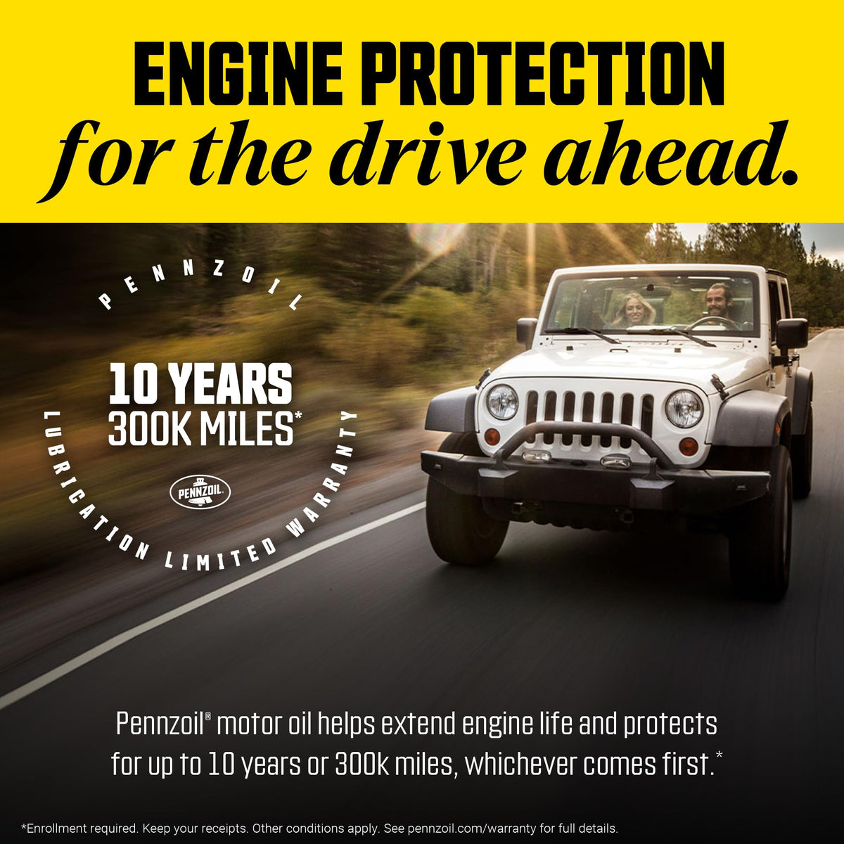 Pennzoil High Mileage 5W-30 Synthetic Blend Motor Oil Is Designed For Engines With More Than 75,000 Miles, Specially Formulated To Help Stop Leaks From Seals And Reduce The Oil Consumption That Is Typical Of Older, Worn Engines. Severe Oil Consumption And Oil Burn-Off May Also Cause Other Issues, Leaving Deposits On The Internal Parts Of Your Engine. Pennzoil High Mileage Motor Oil Also Helps Prevent Dirt And Sludge From Turning Into Performance-Robbing Deposits. Pennzoil High Mileage Motor Oil Comes With A Warranty Coverage Of Up To 10 Years Or 300,000 Miles*, Whichever Comes First. (*Pennzoil Motor Oil Lubrication Limited Warranty: Up To 10 Years Or 300,000 Miles, Whichever Comes First, If You Exclusively Use Pennzoil Motor Oil, Pennzoil Professional Motor Oil, Pennzoil Gold Synthetic Blend Motor Oil, Pennzoil High Mileage Motor Oil, Pennzoil High Mileage Full Synthetic Motor Oil, Or Pennzoil Full Synthetic Motor Oil. Your Engine Must Have Fewer Than 125,000 Miles And Have Been Manufactured In The Past 72 Months. To Maintain Your Warranty, Change Your Vehicles Oil And Oil Filter At Least As Often As Recommended By The Vehicle Manufacturer. Enrollment Required. Keep Your Receipts. Other Conditions Apply. See Pennzoil.Com/Warranty To Enroll And For Full Details And Terms.)