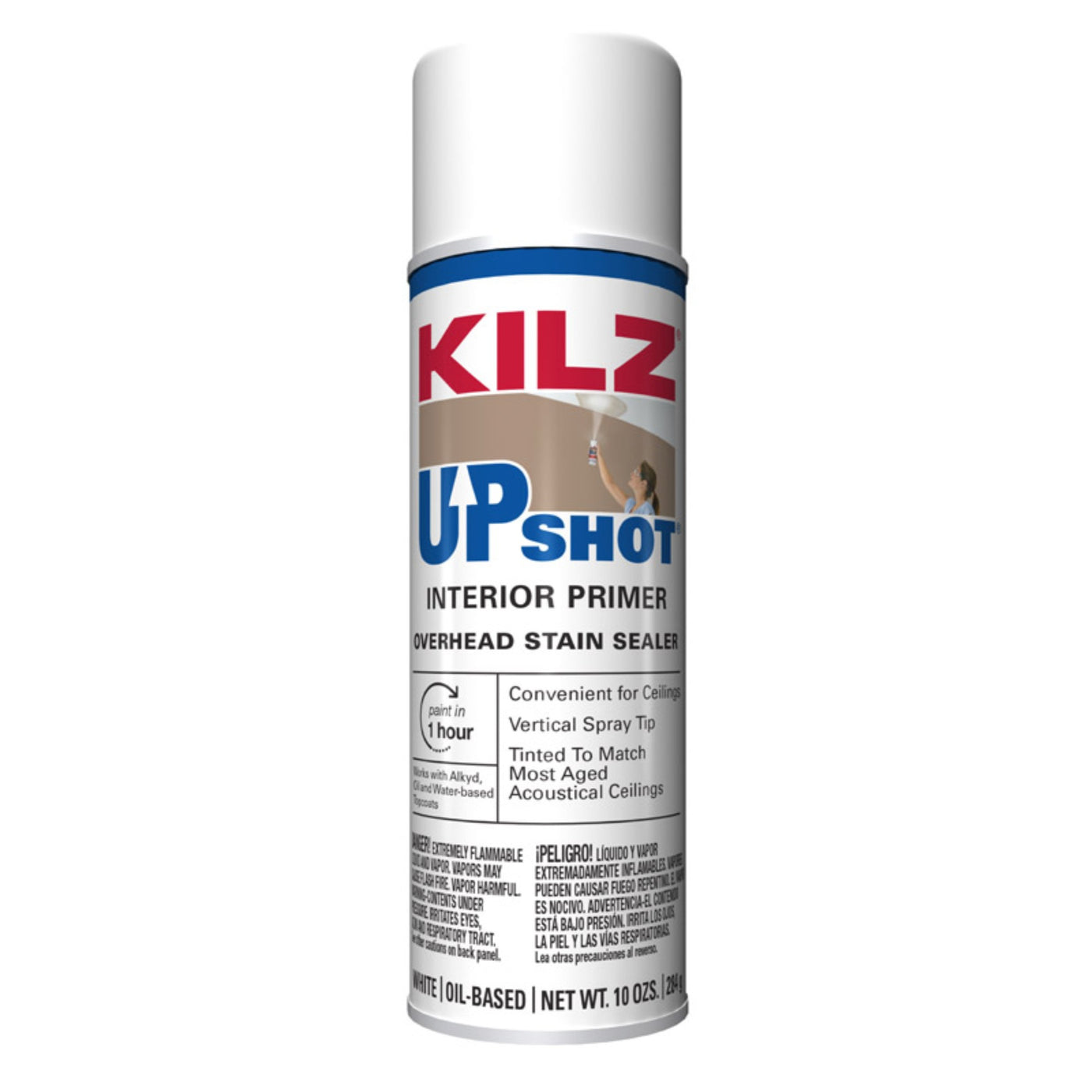 Q: Can the Kilz Up Shot Aerosol Primer be tinted?A: Yes, the Kilz Up Shot Aerosol Primer can be tinted to match most aged and acoustical ceilings, allowing for seamless integration with existing surfaces.