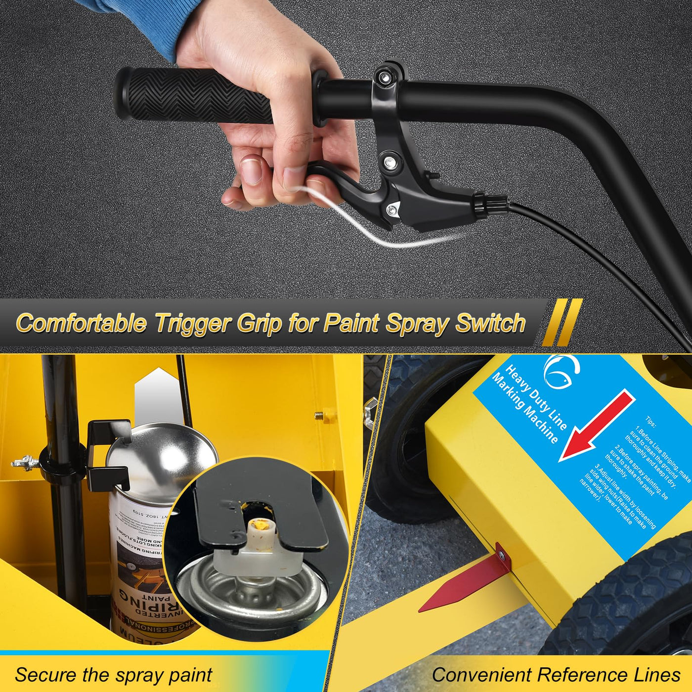 Q: Is the GADFISH Line Marking Machine easy to operate?A: Absolutely! The GADFISH striping machine features a comfortable trigger grip that allows for simple operation. Once installed, you can effortlessly pull the trigger to create clearly marked lines with ease.