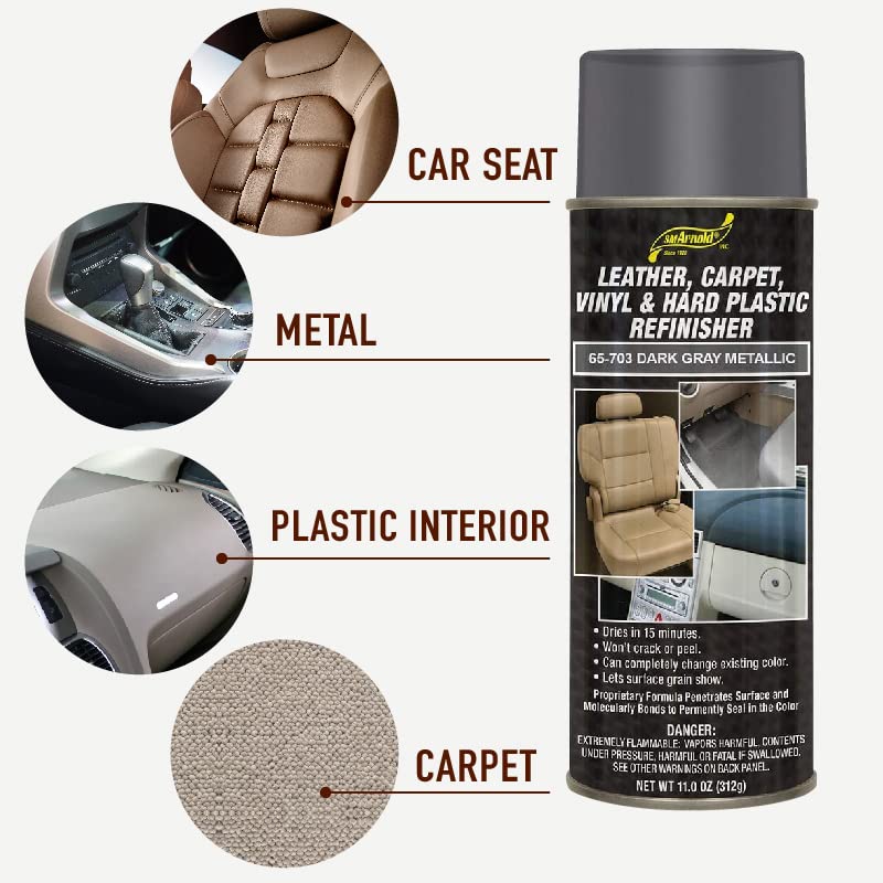 Sm Arnold Refinishing Spray Paint - Dark Gray Metallic 11 Oz. - For Leather, Carpet, Vinyl, Metal, Plastic, Polycarbonate, Polypropylene, Acrylic, Lexan, Fiberglass | Pro Grade Aerosol Refinisher