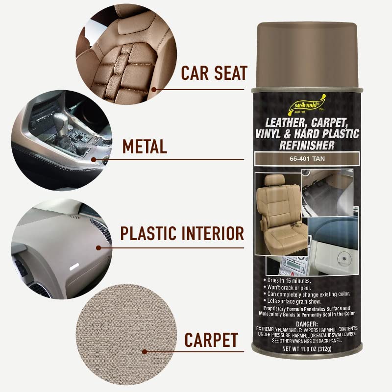 Sm Arnold Refinishing Spray Paint - Tan 11 Oz. - For Leather, Carpet, Vinyl, Metal, Plastic, Polycarbonate, Polypropylene, Acrylic, Lexan, Fiberglass | Pro Grade Aerosol Refinisher