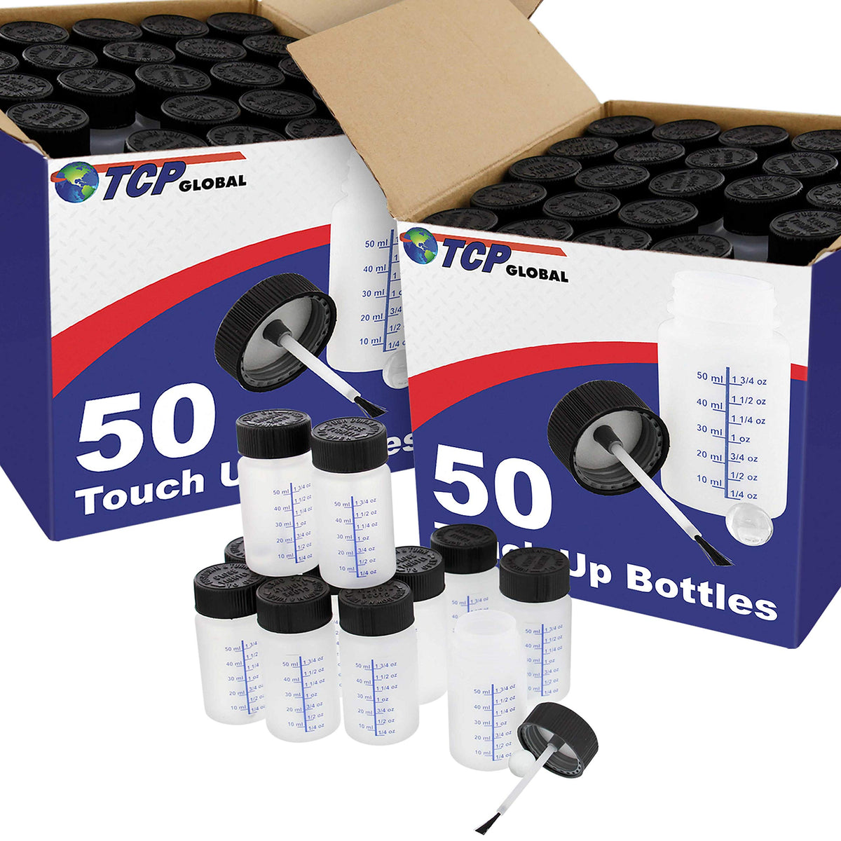 Tcp Global Paint Touch Up Bottles With Child Safety Lids (Box Of 100) - 2 Ounce (60Ml) Fluid Capacity, Mixing Ball, Touch-Up Applicator Brush - Fix Paint Chips, Scratches, Stone Chips, Auto Car Damage